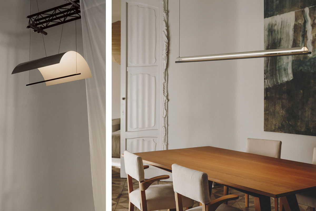 Perhaps even more than with other branches of design, lighting design is especially capable of radically transforming the atmosphere and the aesthetic experience of a space. Take a look, for instance, at the Lamina Mayor pendant designed by Antoni Arola for Santa & Cole. Straddling the functional and the sculptorical in equal measures, the Lamina Mayor exploits the virtues of indirect reflected light while at the same time occupying space in a way reminiscent of someone like Bruno Munari’s work with mobiles.