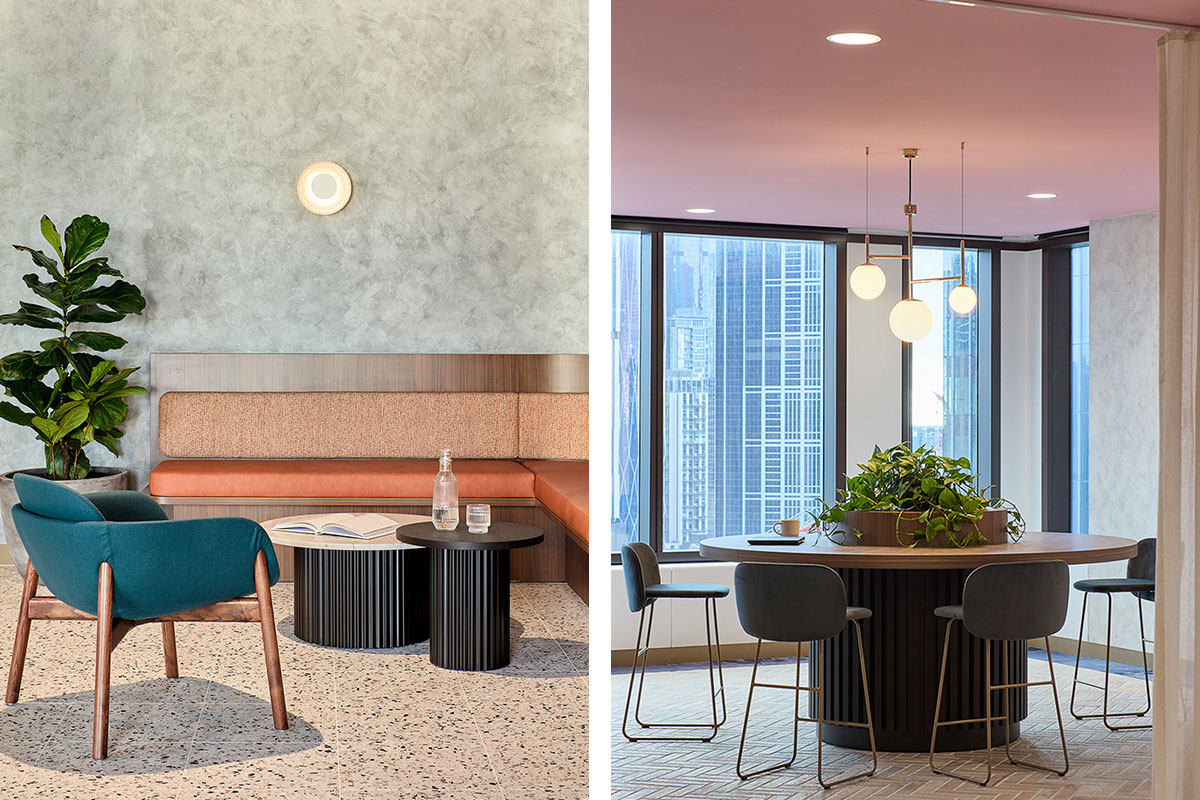 We were lucky to be able to contribute to Studio 103’s refurbishment of Level 16 of the Queen & Collins Tower. For those of you who are not from Melbourne and may not know this iconic tower, you might want to do a quick search—you are in for a surprise. The tower is part of one of the most iconic corners in the centre of Melbourne’s financial district, towering behind the old 19th Century Gothic Bank and Stock Exchange. Echoing the Gothic motives of the historical buildings, the tower itself was built in 1993 by Peddle Thorp architects, in line with the postmodern style popular at the time. To make room for new office spaces, several of its levels have been refurbished in the last couple of years, while often keeping the extravagance of the original building. Studio 103, an energetic multidisciplinary team of young professionals, was entrusted to redesign the sixteenth level, and the results were quite remarkable.
