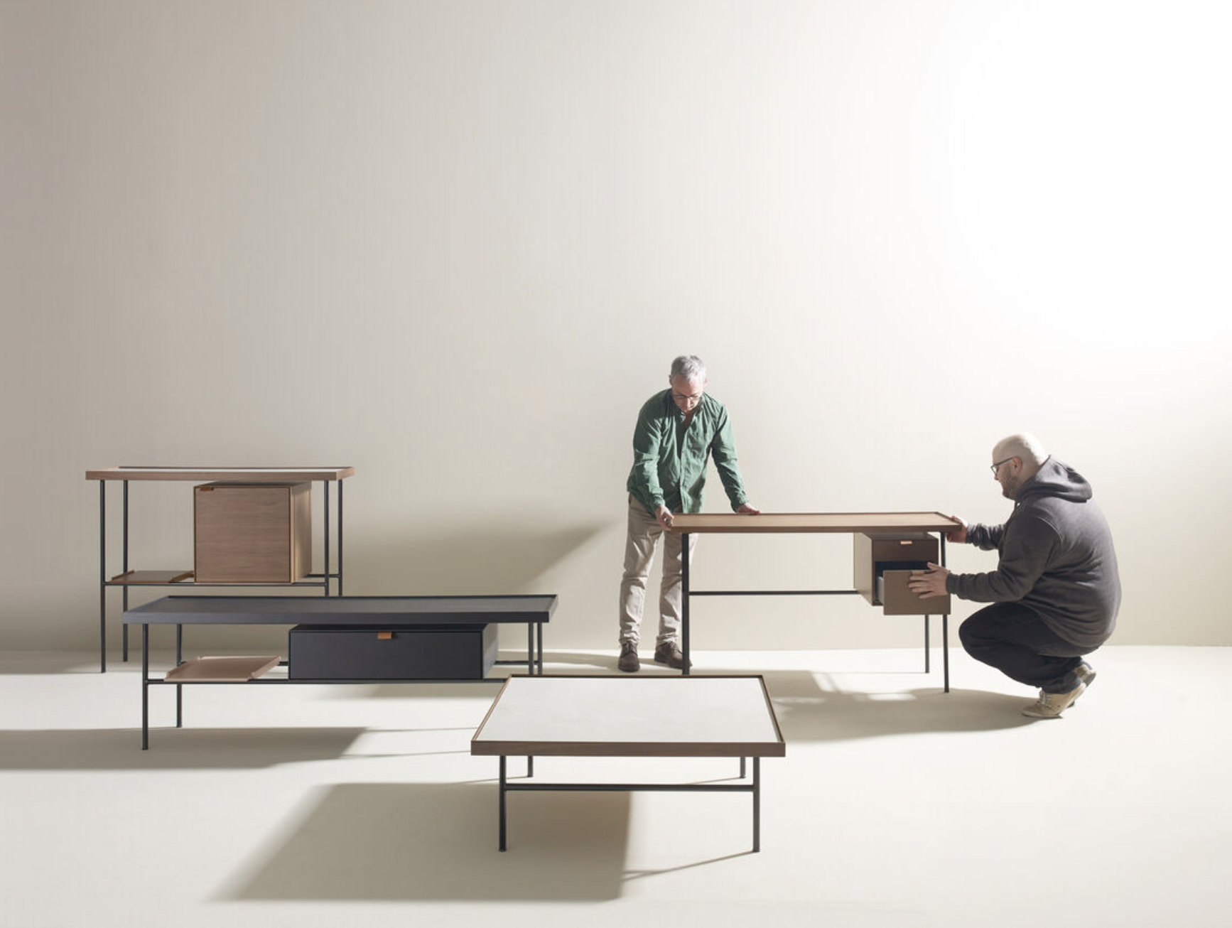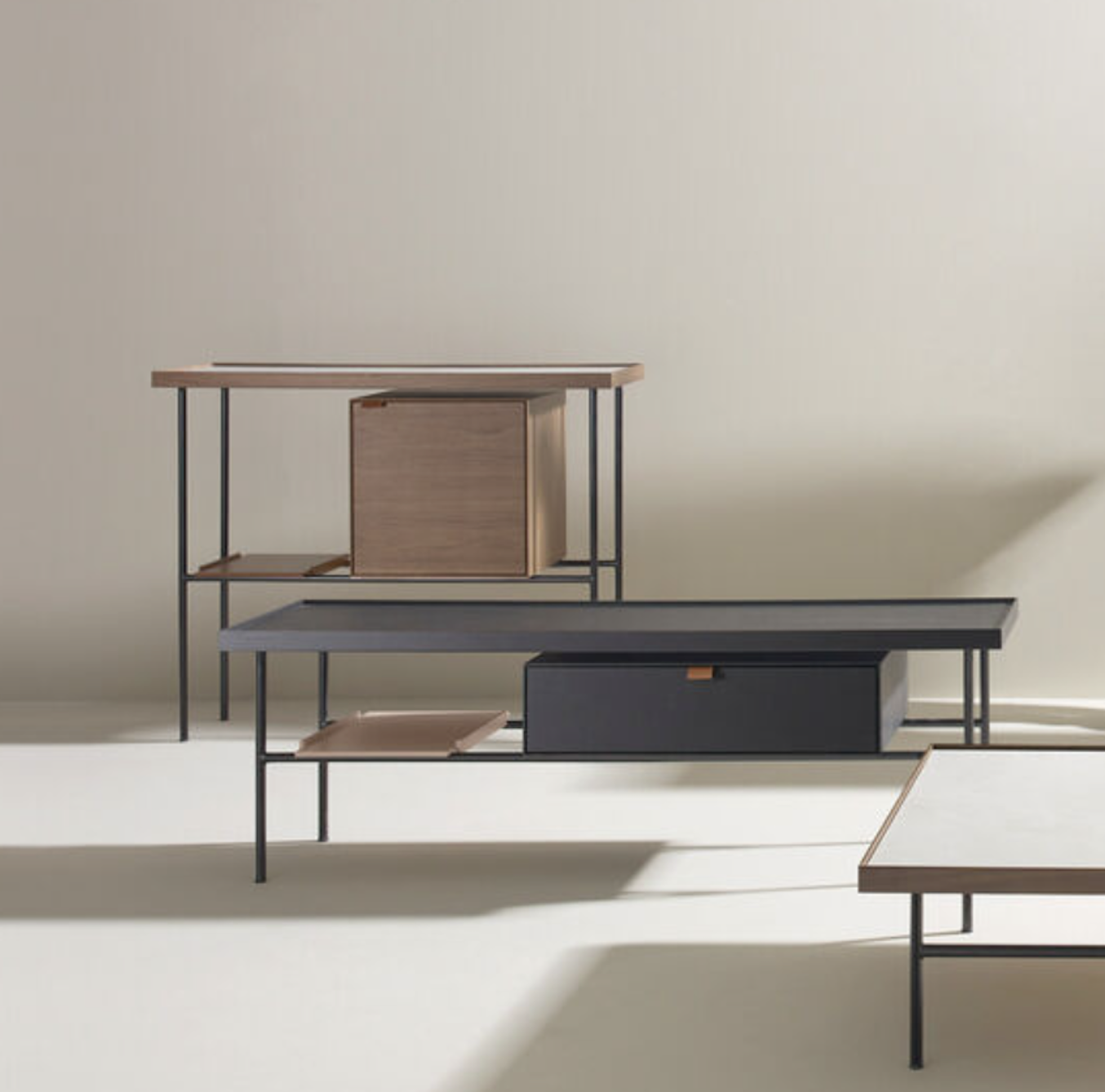 All the pieces in the Kutxa collection have a sculptural touch, but without direct reference to artists or their work. The idea is that this furniture contributes to creating more peaceful, cared-for spaces, rather than simply optimising storage space. We were keen to create a furniture collection with different figures, where each piece has its own personality and fulfils a function within a visual framework.