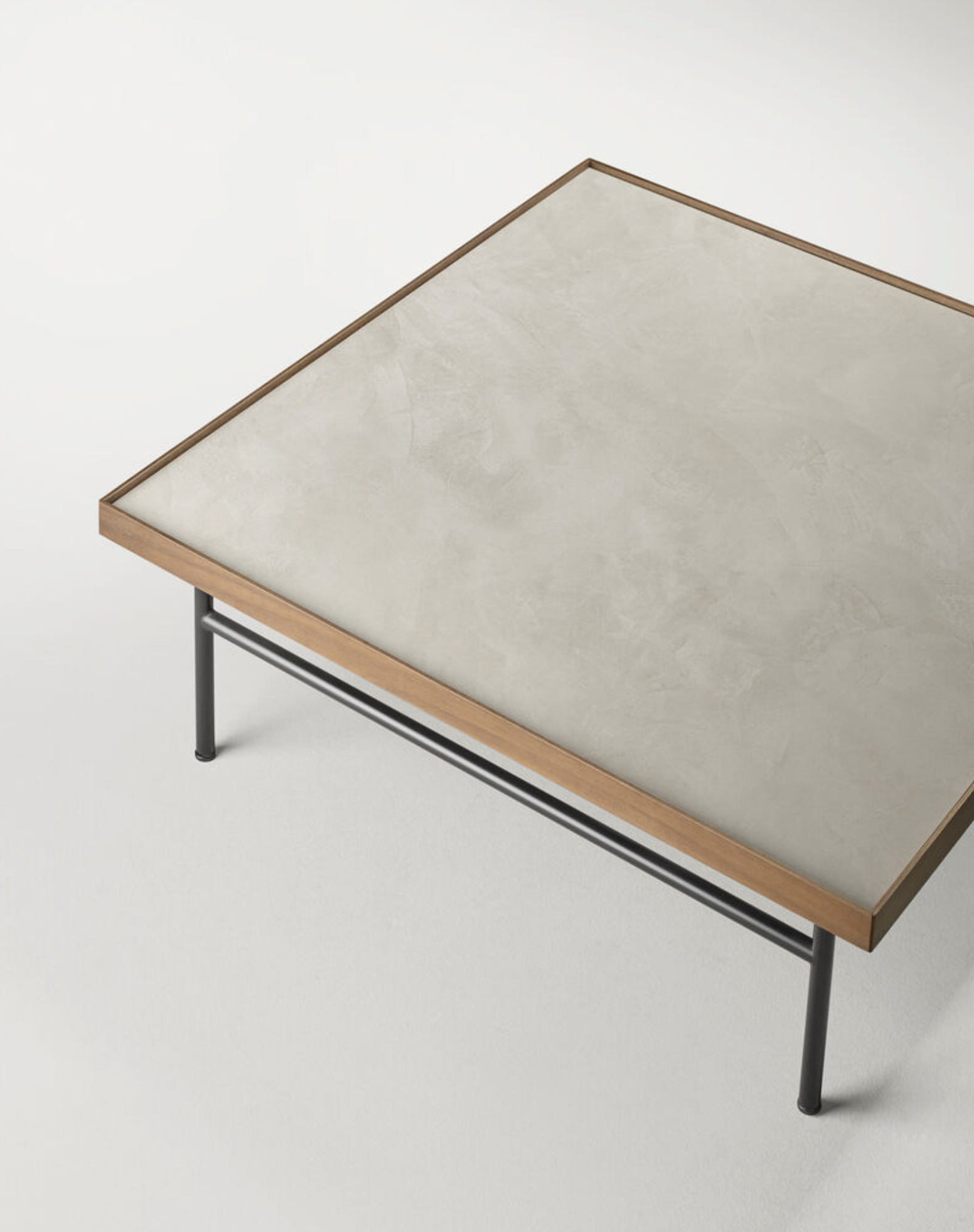Everything stems from a drawing that came up unexpectedly. That sketch already showed the idea of a box suspended within a very simple and architectural structure. The play of contrasts was also present, between the sturdiness of wood and the delicacy of metal.