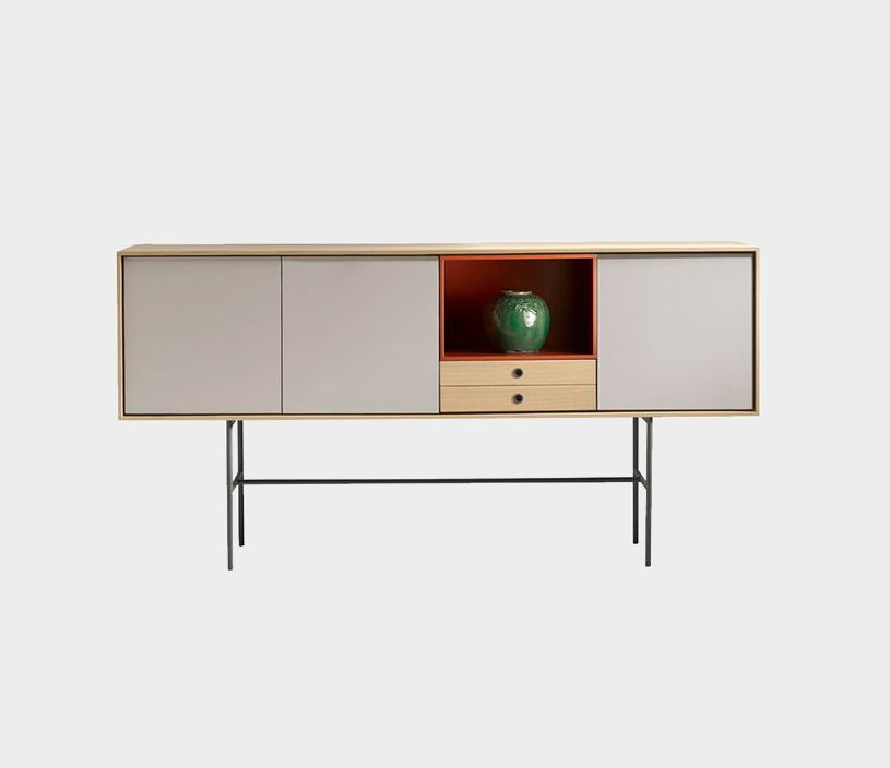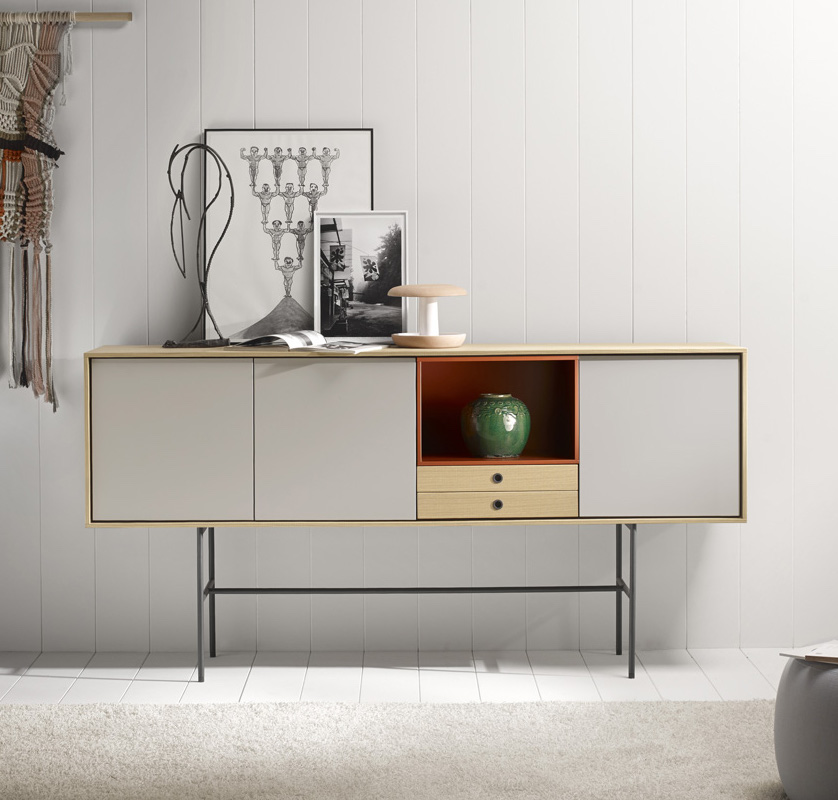 The Aura collection has been conceived mainly for sideboards and furniture for living rooms and dining rooms. Its design is inspired by the past and under the influence of the design culture of the Nordic countries, which know how to combine tradition and naturalness with large doses of modernity. The result: a collection full of memories that gives off a very modern aura. The metal and wood legs designed especially for the collection reinforce that retro and timeless look. The finish is very important: walnut and oak wood with a hyper-natural finish and a lacquered look which combine perfectly well with the wood.