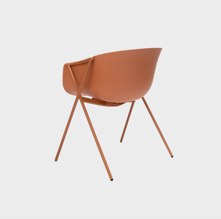 Generous proportions and wraparound lines, a versatile piece that has a noble and welcoming appearance. Its characteristic crossed leg frame holds up a soft and organic seat in polypropylene.