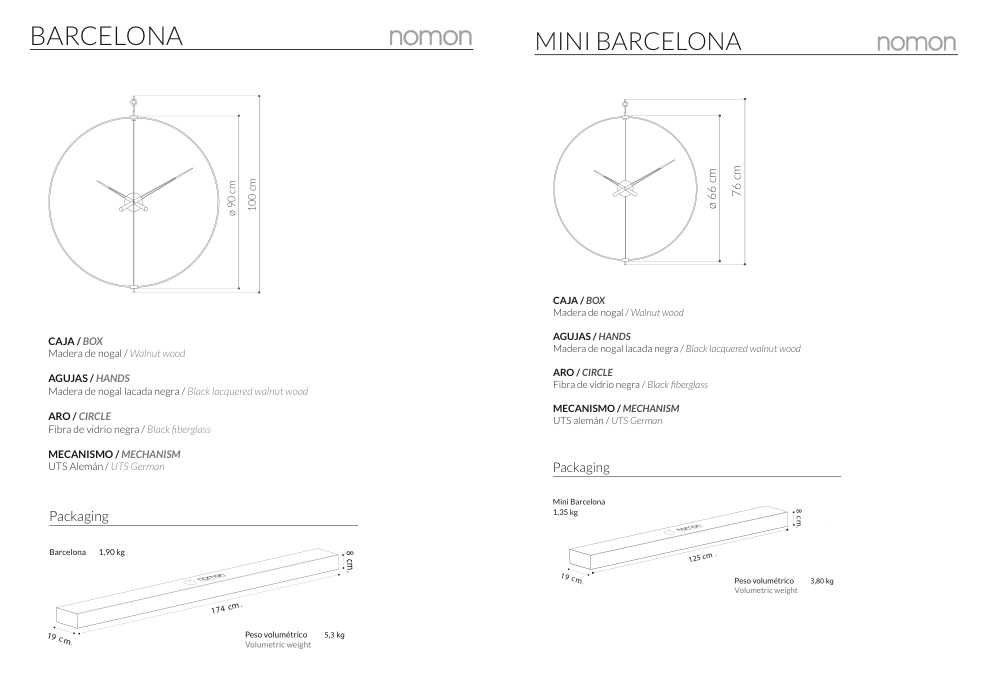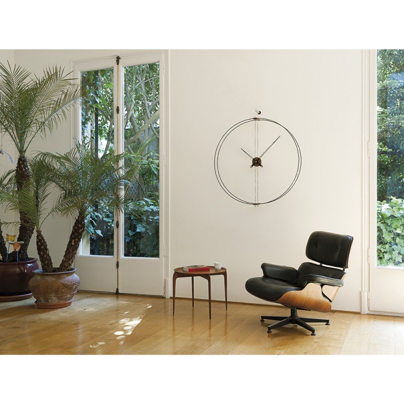 Barcelona is the Nomon’s most iconic and representative clock, its best-seller par excellence. A wall clock with a double black, ultra-thin fiberglass rim that combines two pieces of walnut, upper and lower, with different metallic finishes for the hands and central box. This successful model, so recognisable, perfectly symbolises the essence of the brand.