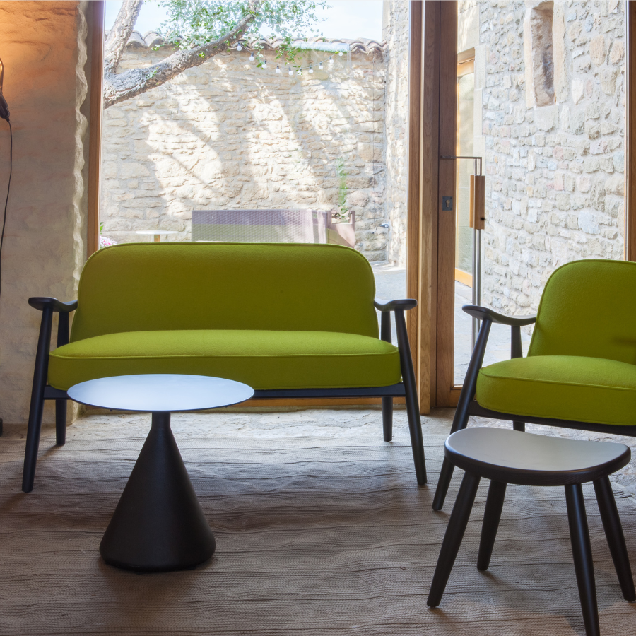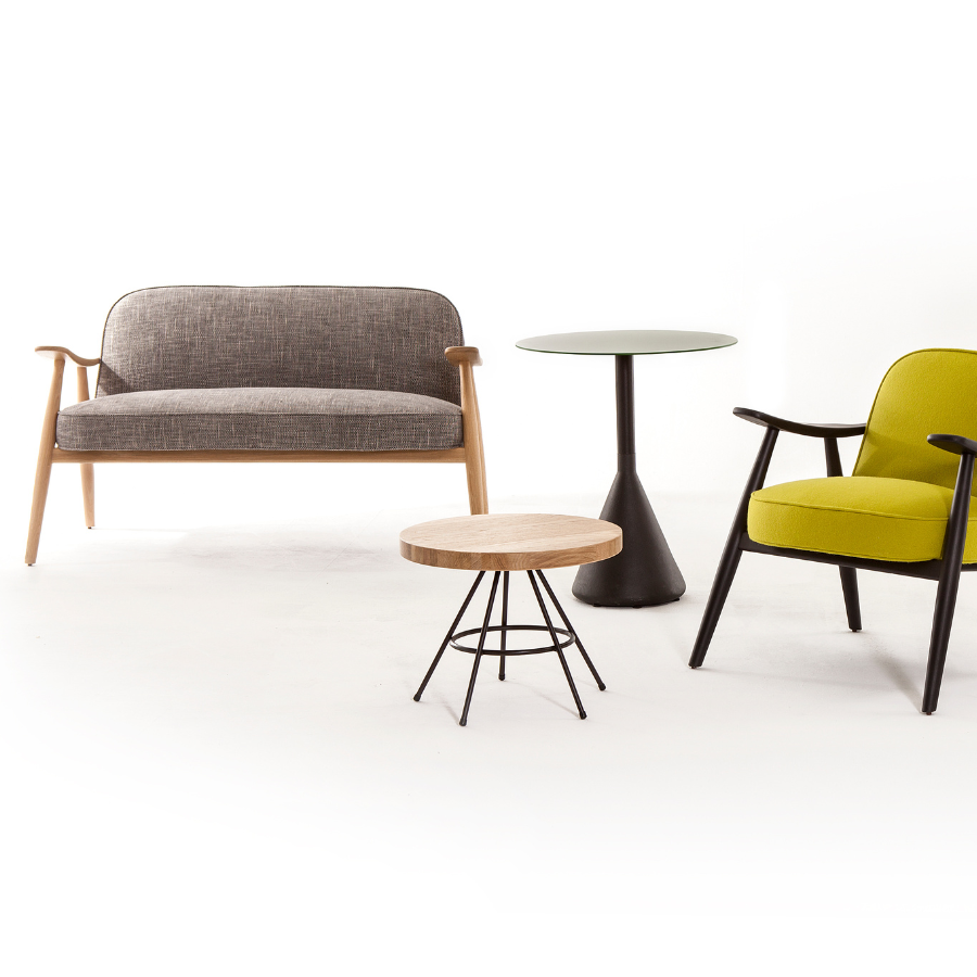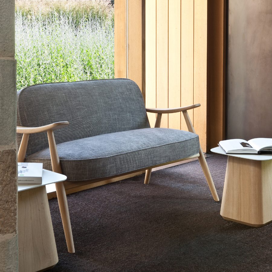 Upholstered backrest and seat, available in fabric, leather or the client’s own fabric (COM).