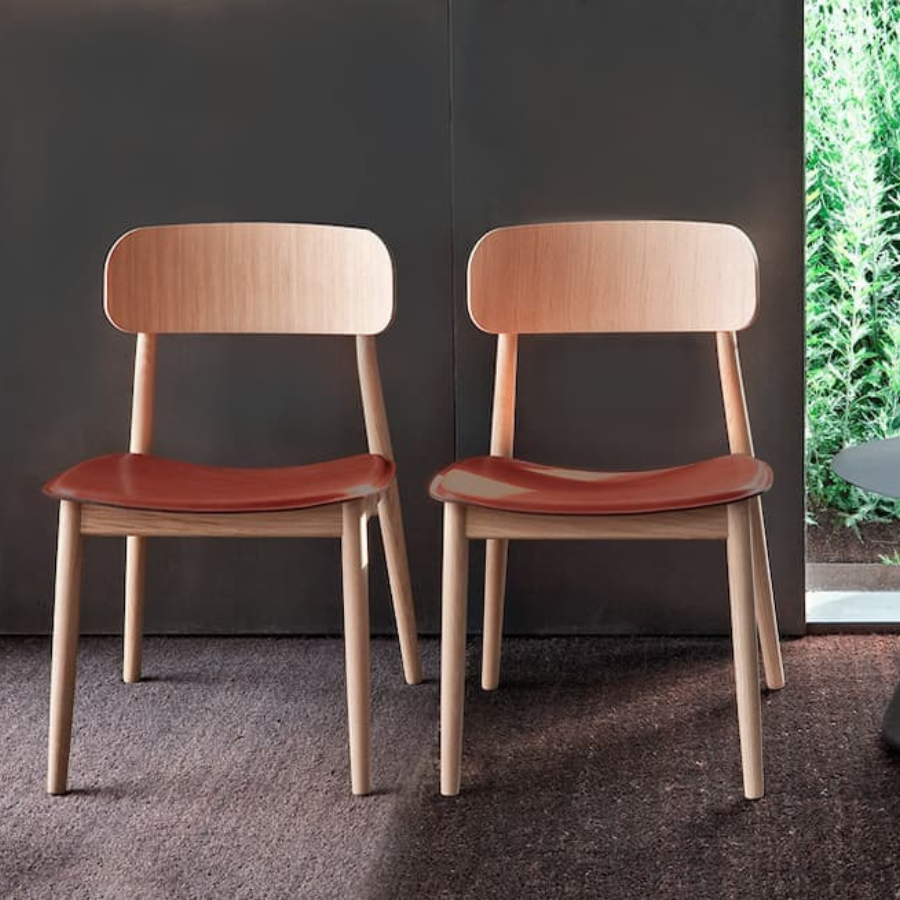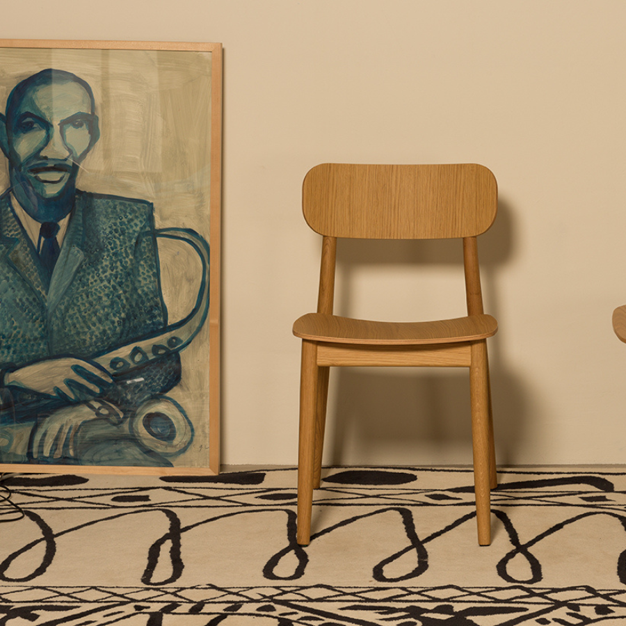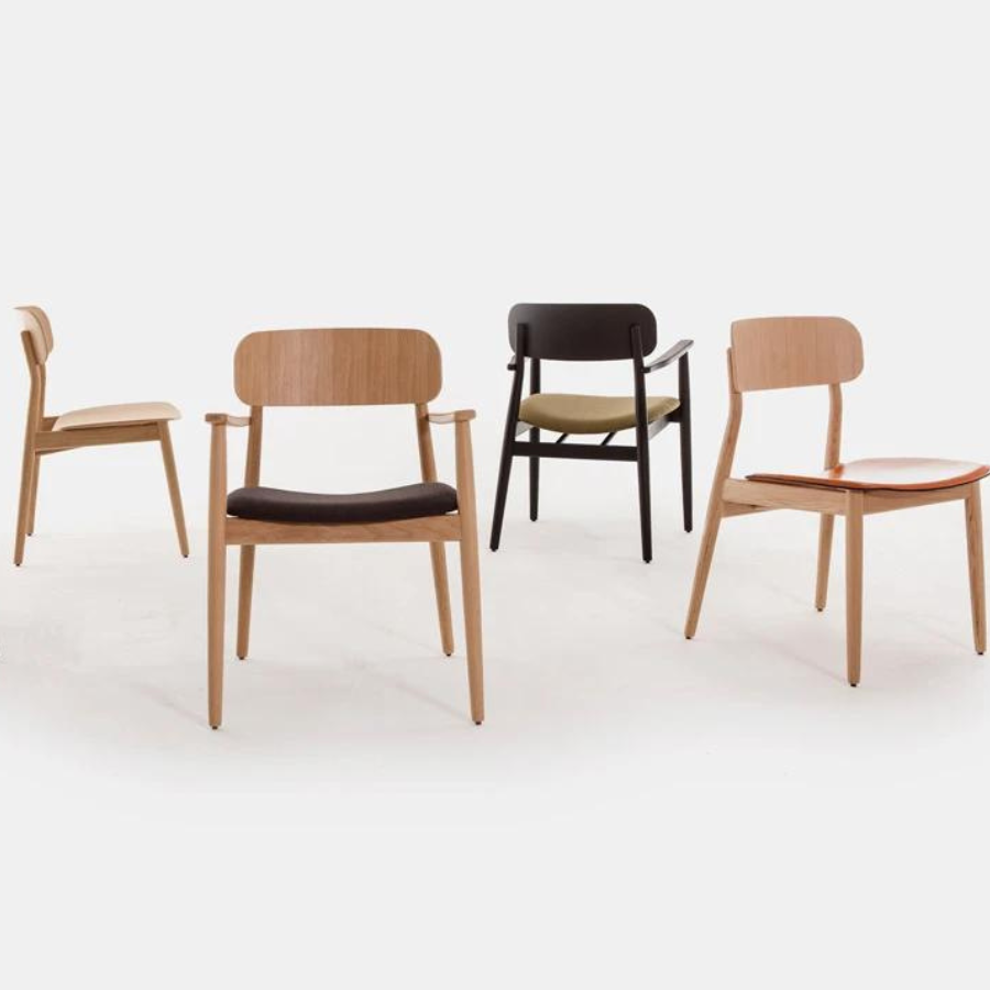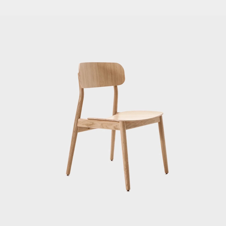 Both versions feature a solid wood frame crafted from beech, oak, or black-stained wood, with a wooden board backrest. The seat comes in either a wooden or upholstered finish, providing options to suit different aesthetics and environments. With its clean lines and refined craftsmanship, the Basic Chair is a timeless addition to any space.