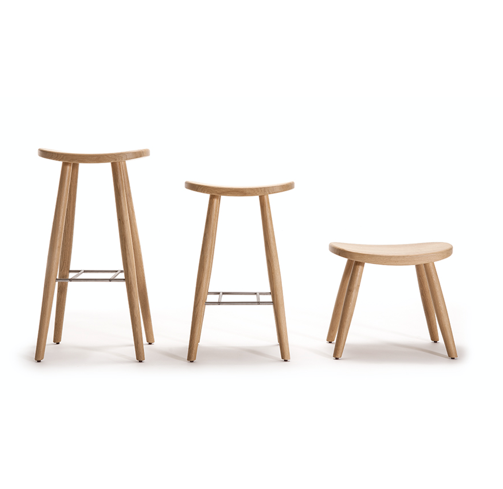 The smallest of these stools started off as a footstool for the armchair. It soon became a seat and grew bigger: it is now available in three heights. This collection is based on solid ideas and respect for tradition: the elegance of Nordic design blended with the organic warmth of the Mediterranean.