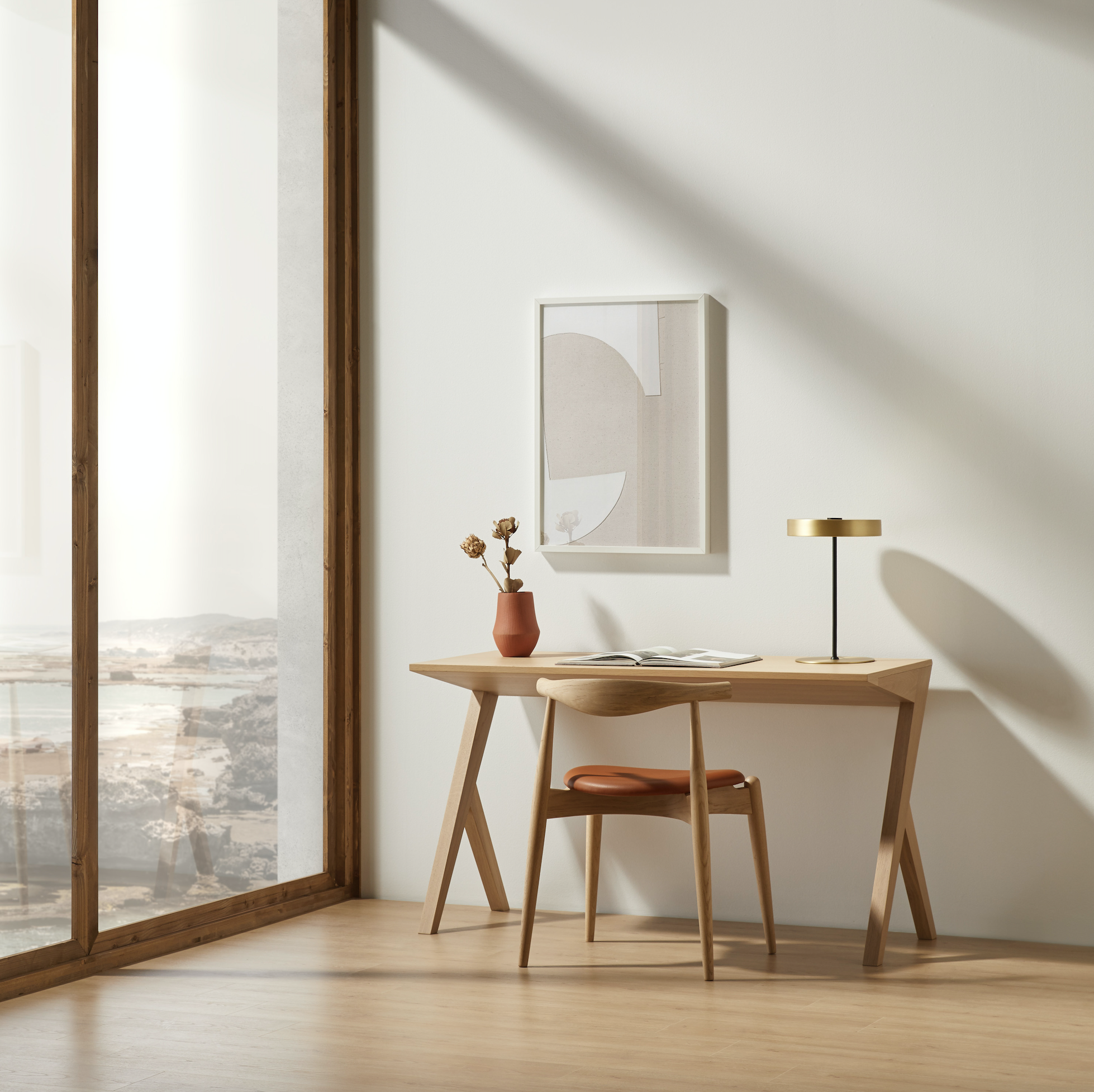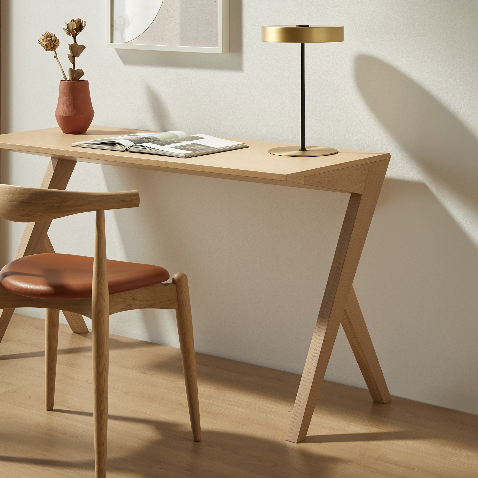 The desk is available in two different sizes making it very versatile for any type of room. It adapts perfectly to an office space or a hotel room where you are looking for a homely feel. A very practical and original solution that thanks to its natural finish brings warmth to the room.