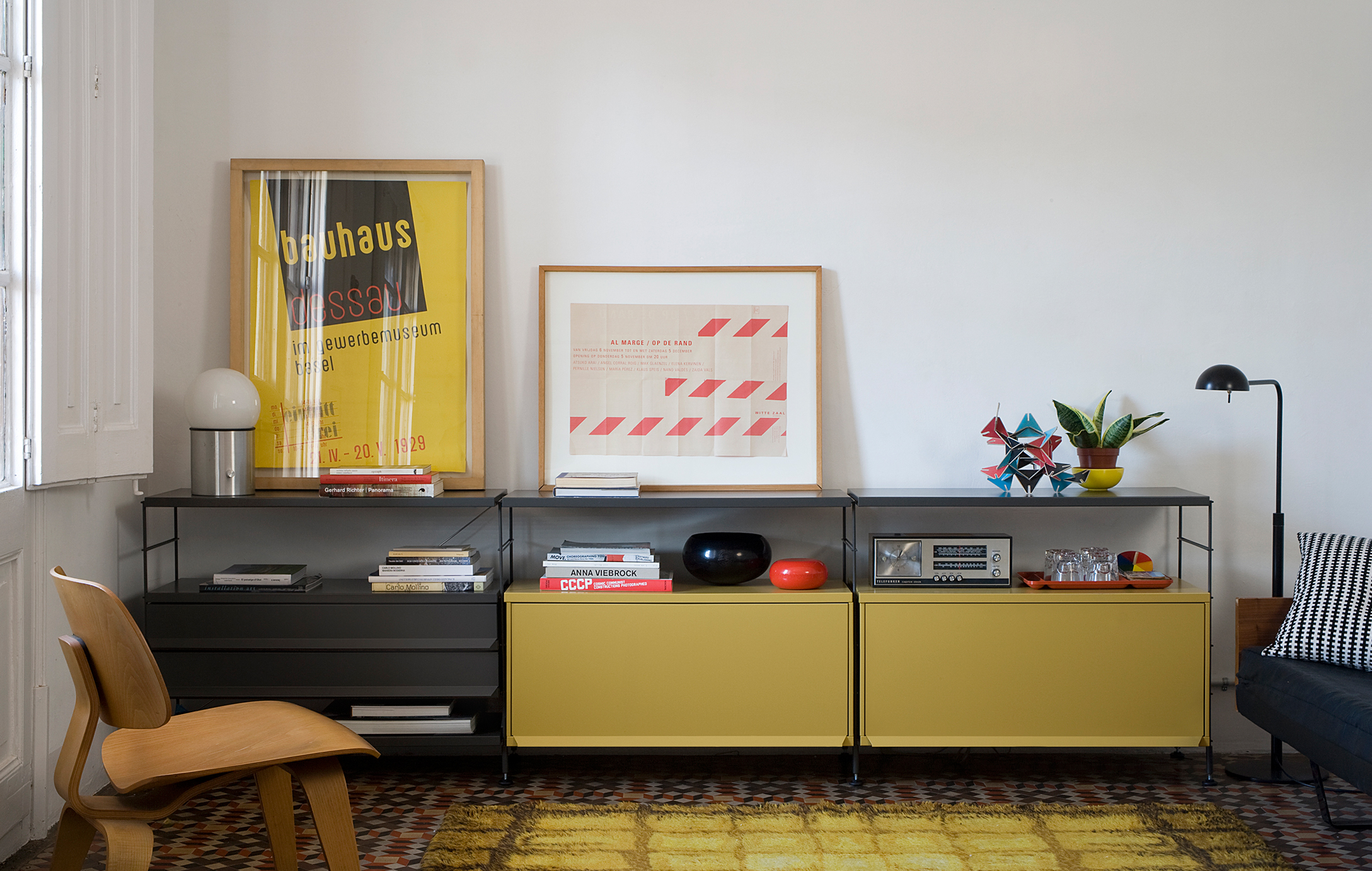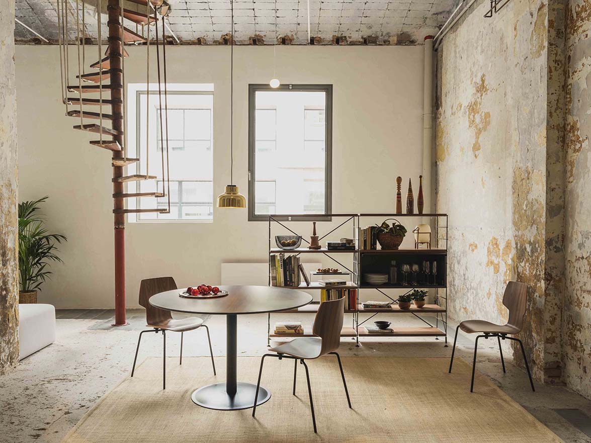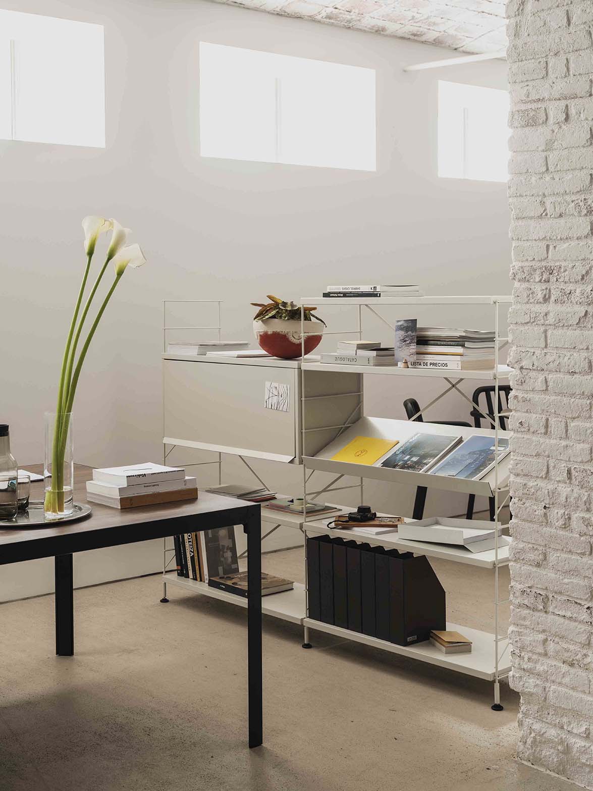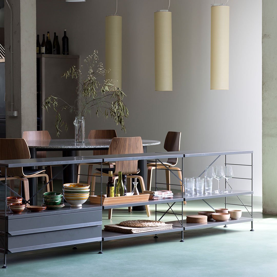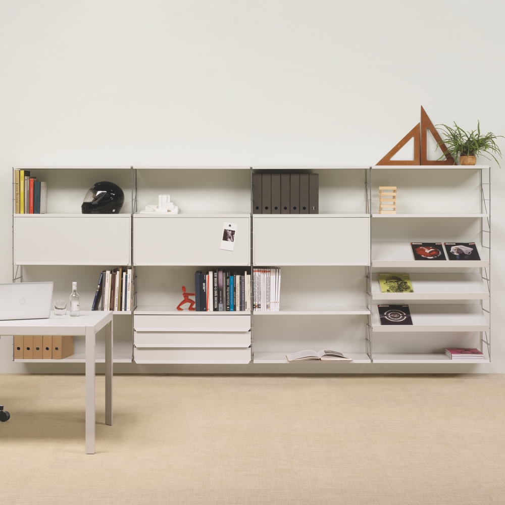 TRIA is a shelving system that has been available on the market continuously since it was originally created (1978) and is still totally relevant today within the world of contemporary design. A multi-purpose, comprehensive system of shelves and accessories that adapts to all the needs and various settings in the home.