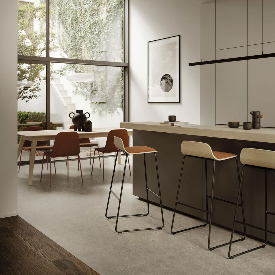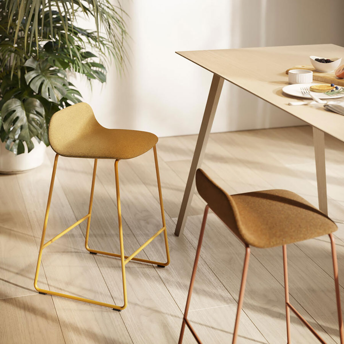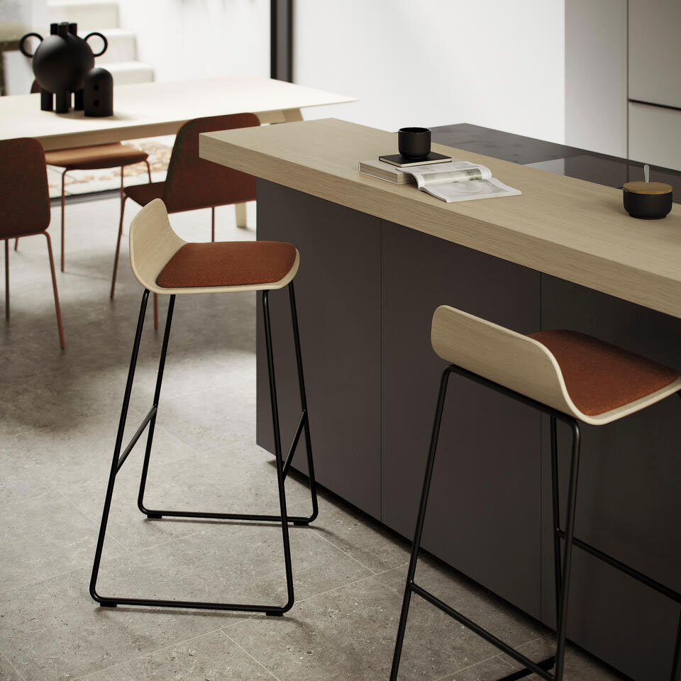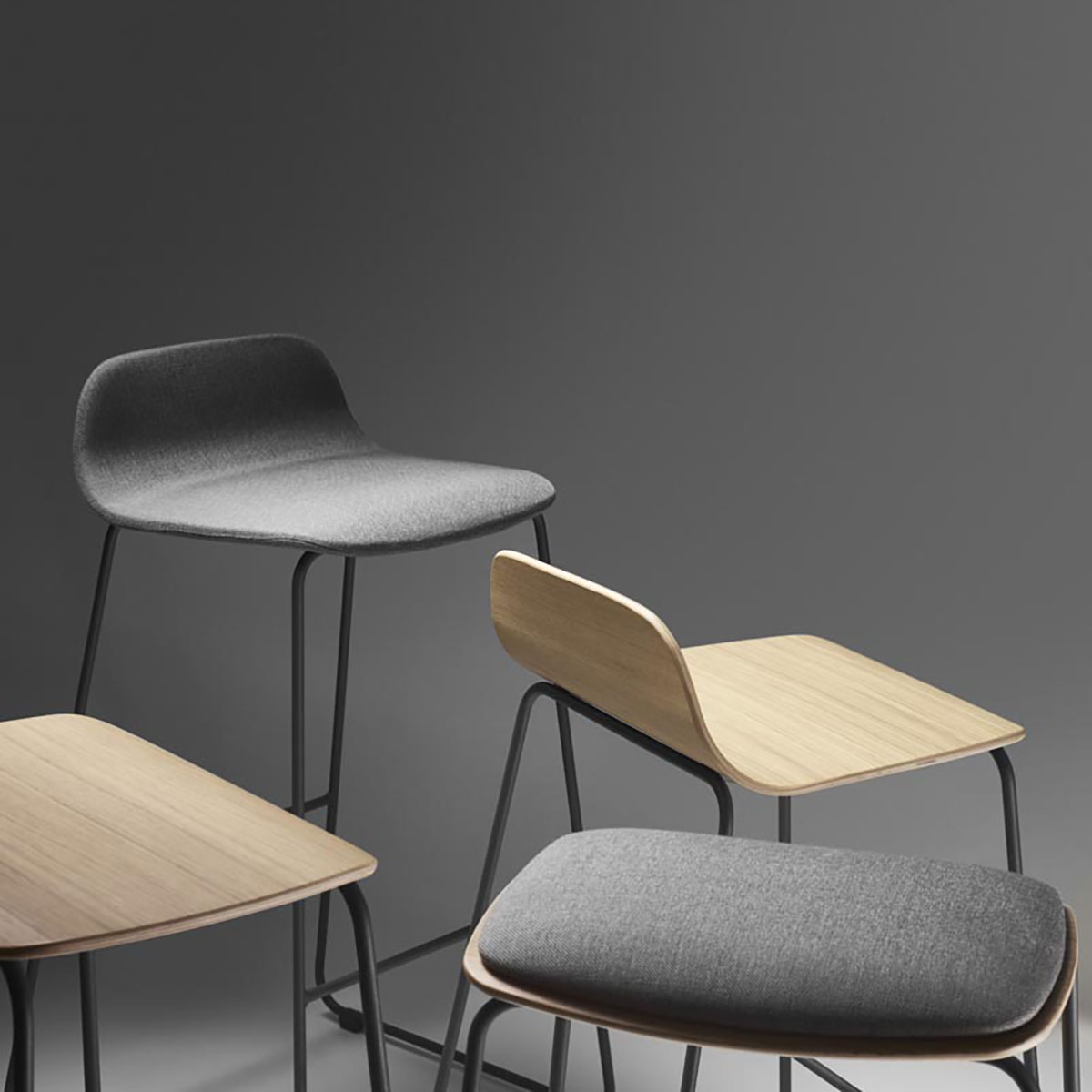 Traditional and modern styles are perfectly balanced in the serene and discreet design of this chair which blends Treku features into warm and intimate settings. Its simple design combines a wooden top, solid wood and upholstery to obtain distinct finishings which, together with different wooden and metal bases, make it suitable for a variety of settings and uses, whether in the home or office.