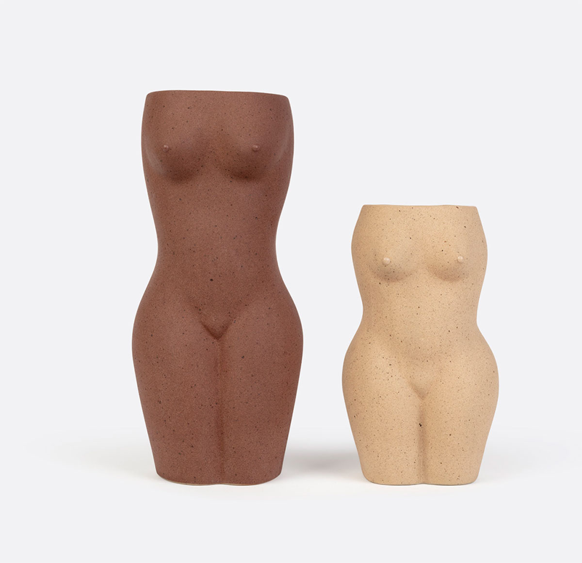 Ceramic vase shaped as a female body that reminds the beauty and diversity of nudity.
