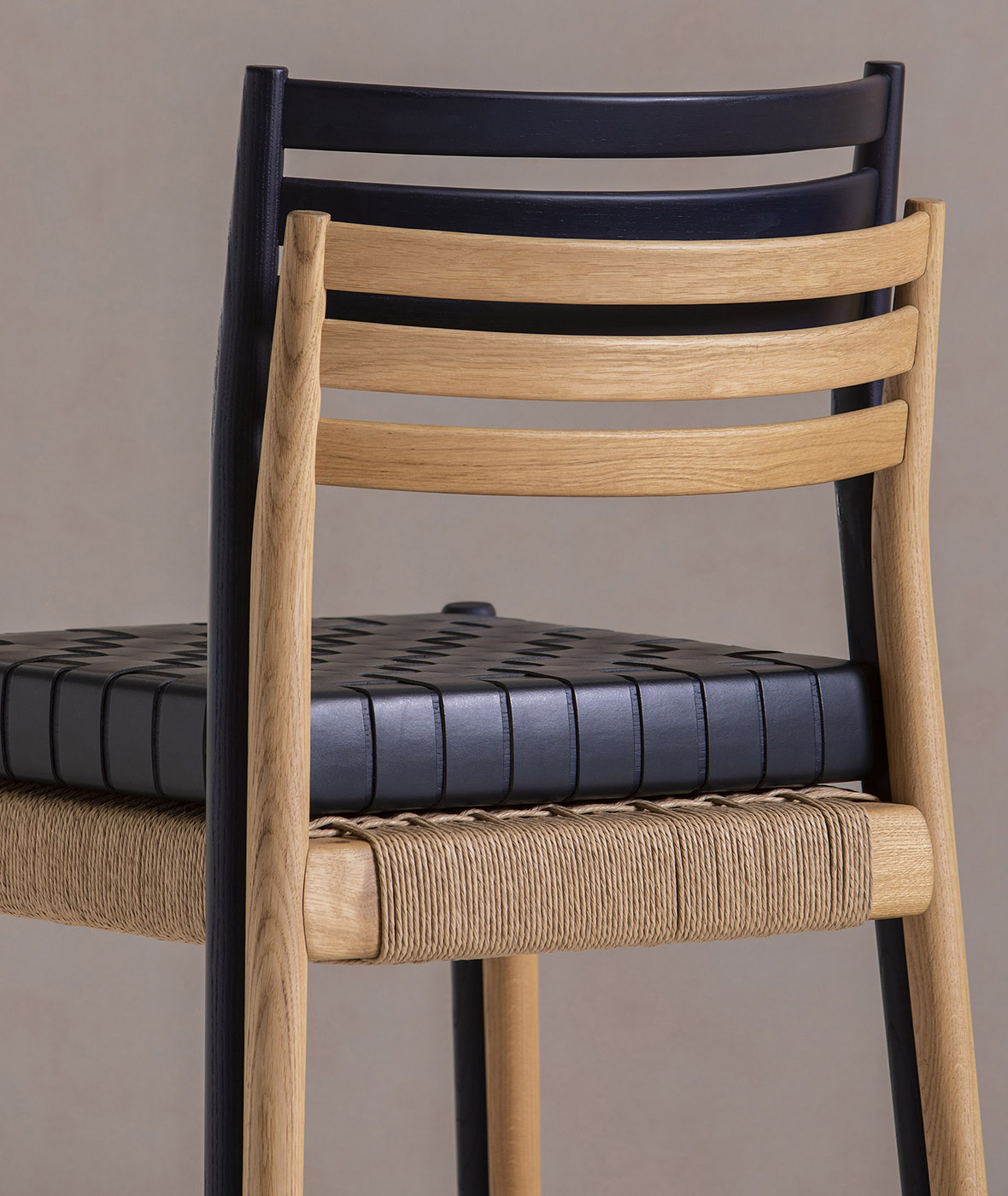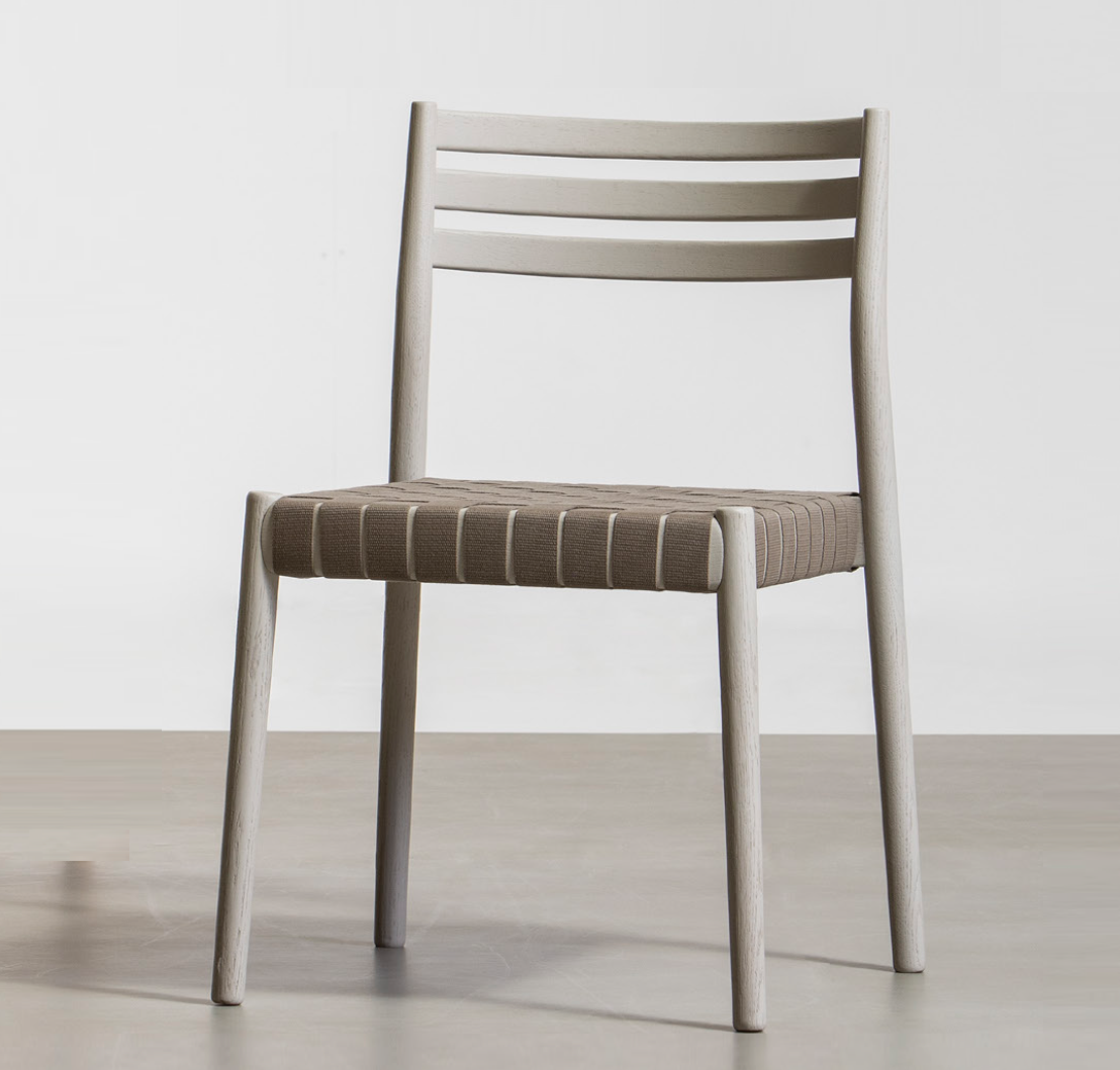 The chair offers versatile seat finish options to suit various interiors and preferences, including upholstered for a plush feel, webbed with leather or polyester cord for a contemporary touch, and wicker for a nod to artisanal heritage. Ideal for both residential and hospitality spaces, the Bogart Chair celebrates materiality and design in perfect harmony.