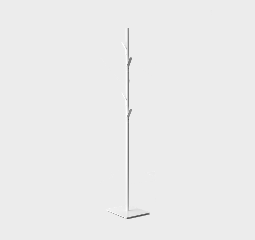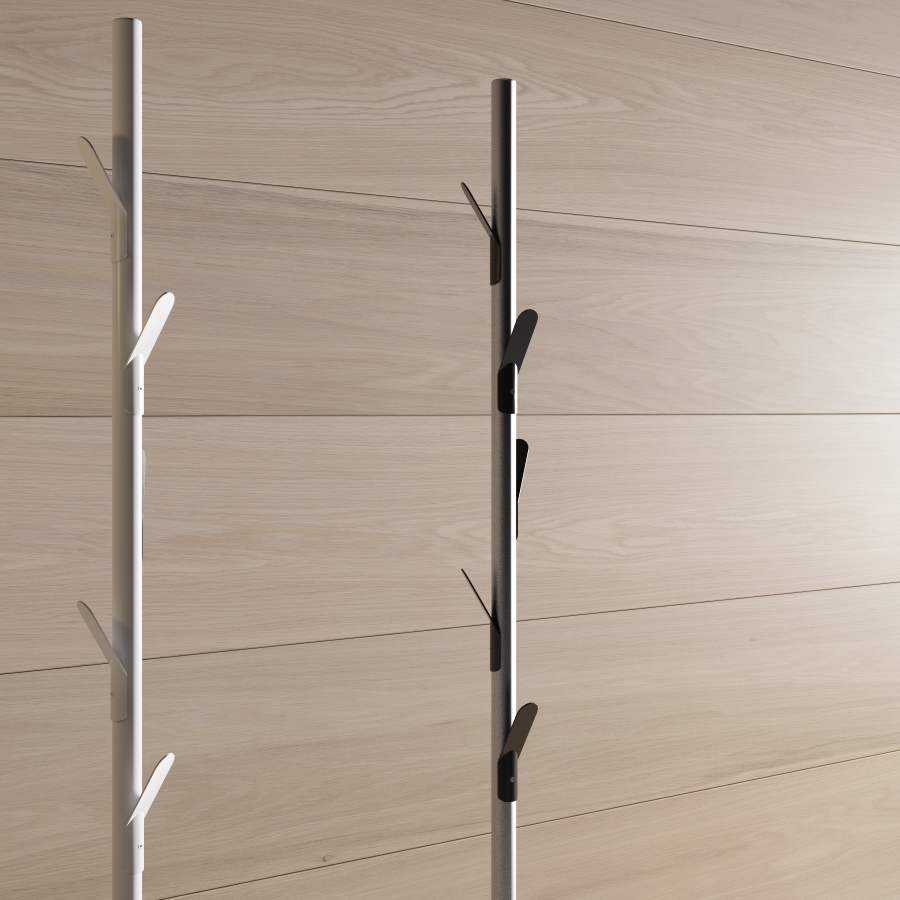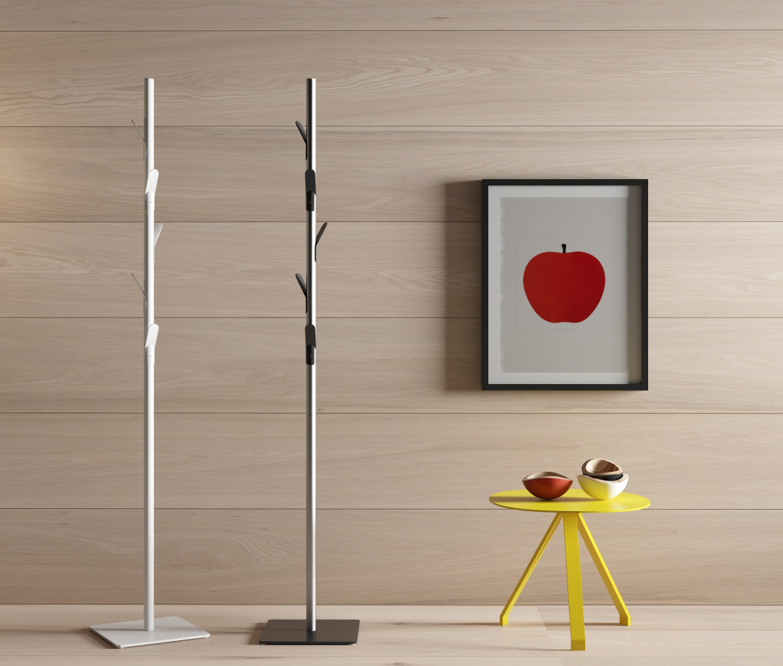 Coat stand with metallic hangers that evoke the branches of a tree. Available in several finishes.