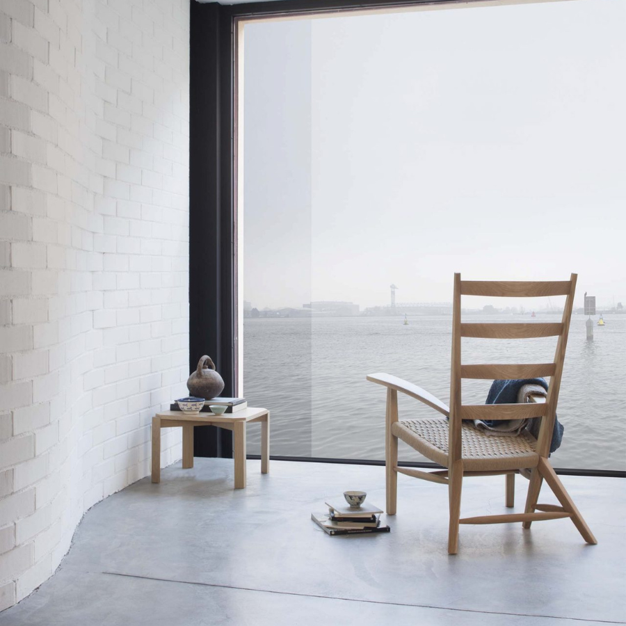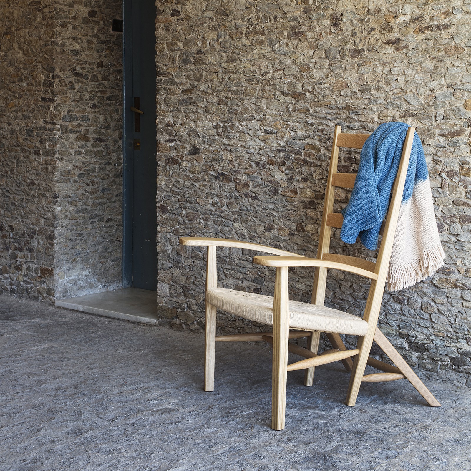 German Rodríguez Arias, the architect who designed two of Pablo Neruda’s homes, originally created the Catalan armchair as part of the furniture for Neruda’s Isla Negra house. Mobles 114 has now revived this iconic piece by Rodríguez Arias, crafting it from oak with a seat upholstered in traditional natural fiber.
