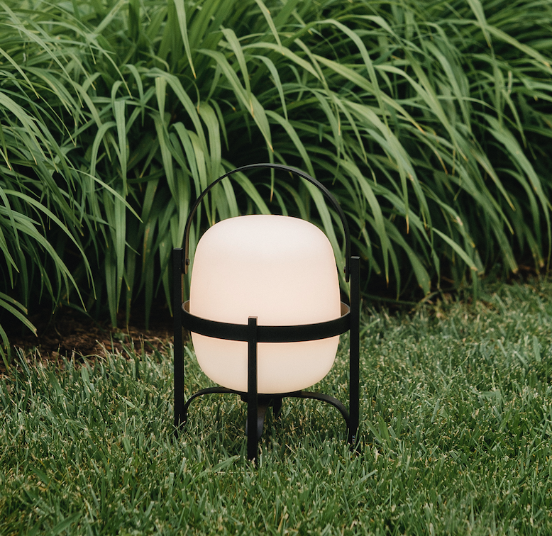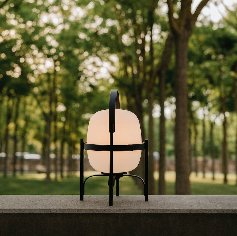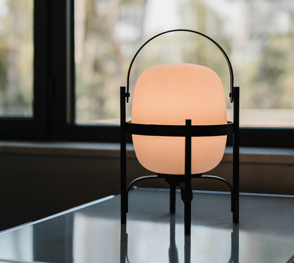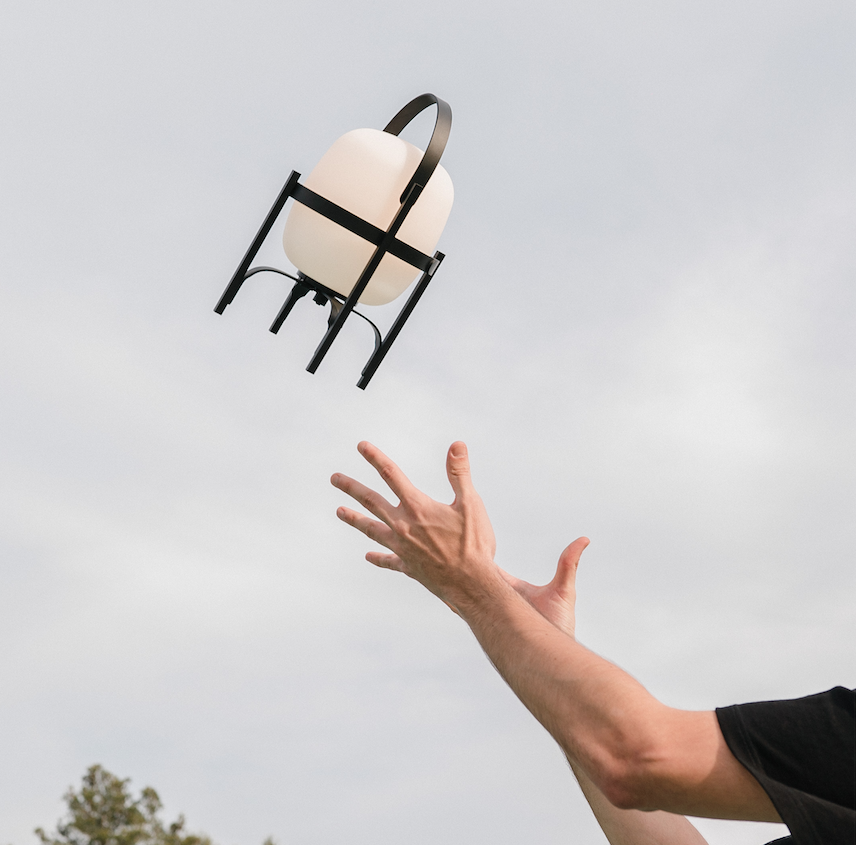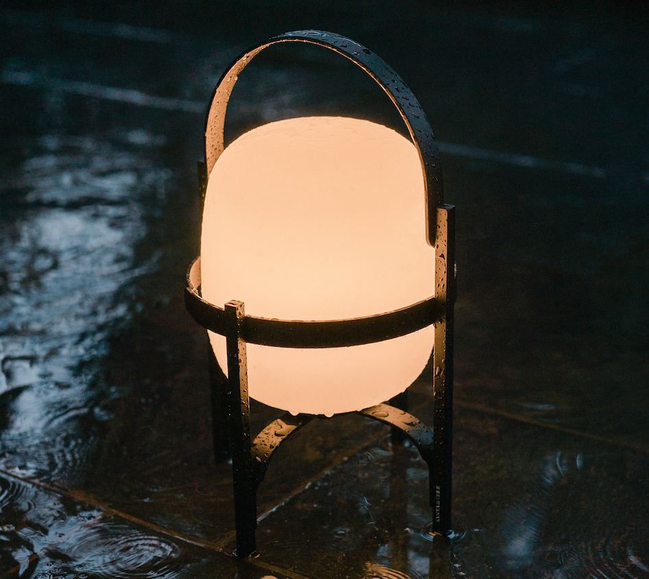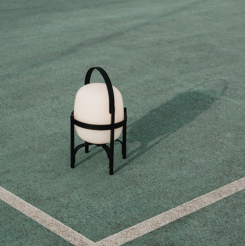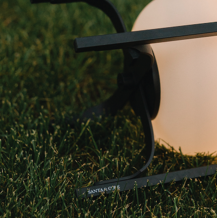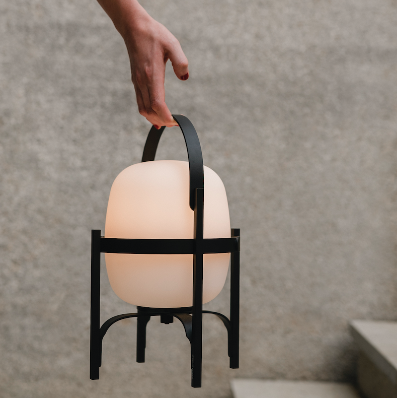 Cestita Alubat is the latest addition to the Cesta family. Robust yet lightweight, this version is ready for action indoors and out. Its aluminium structure, with a closed plastic balloon for better sealing and a rechargeable battery, is distinguished in its black and white sobriety. The three light intensities: full, standard or low, make this lamp excellent company for adventures or quiet time alike.