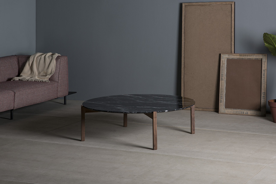 The nobility of its materials and the purity of its design are the core of the Lotta collection, a set of tables capable to raise the standard of any room. Its elegance and its formal structure allow the Lotta table to meet the requirements of any environment. Walnut legs and white or black marble top.