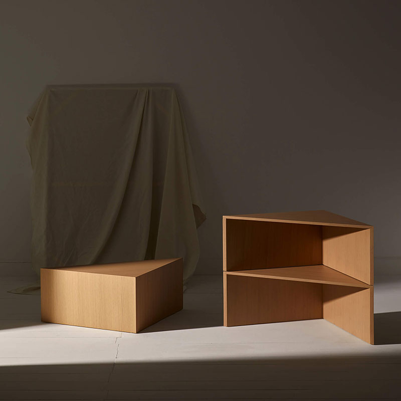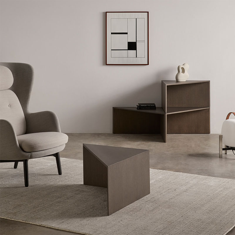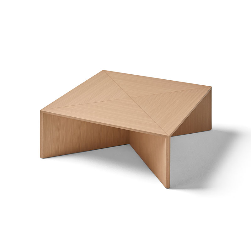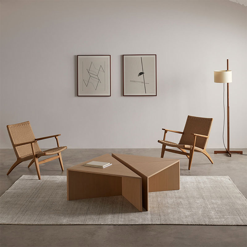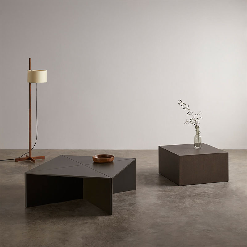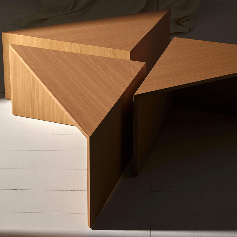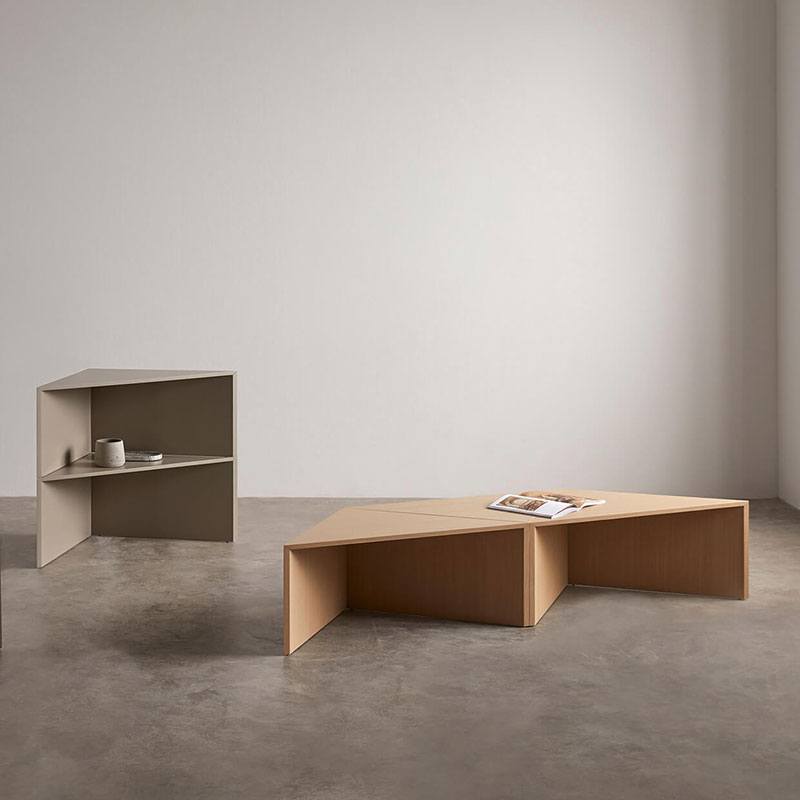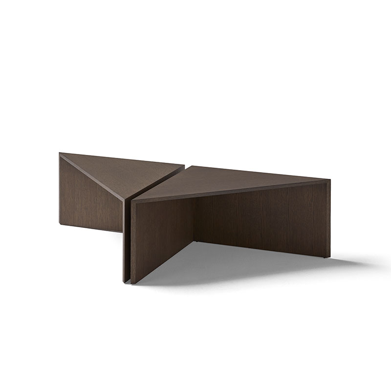 Table composed of four triangular modules that function both together and separately, fulfilling the function of coffee table, side tables or auxiliary complements to complete the needs of each ambience.