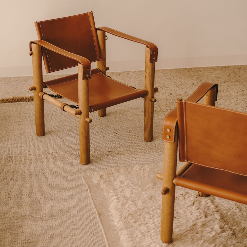Designed by Antoni Bonet himself, the Cubica chair is one of icon and incredible detail. The solid ashwood structure is protected with a matte varnish and is delivered fully assembled. The custom-made brass fittings, axes, and buckles are meticulously crafted. The leather, of the highest quality and 100% vegetable-tanned, is handmade in Isist Atelier’s workshop in Barcelona.