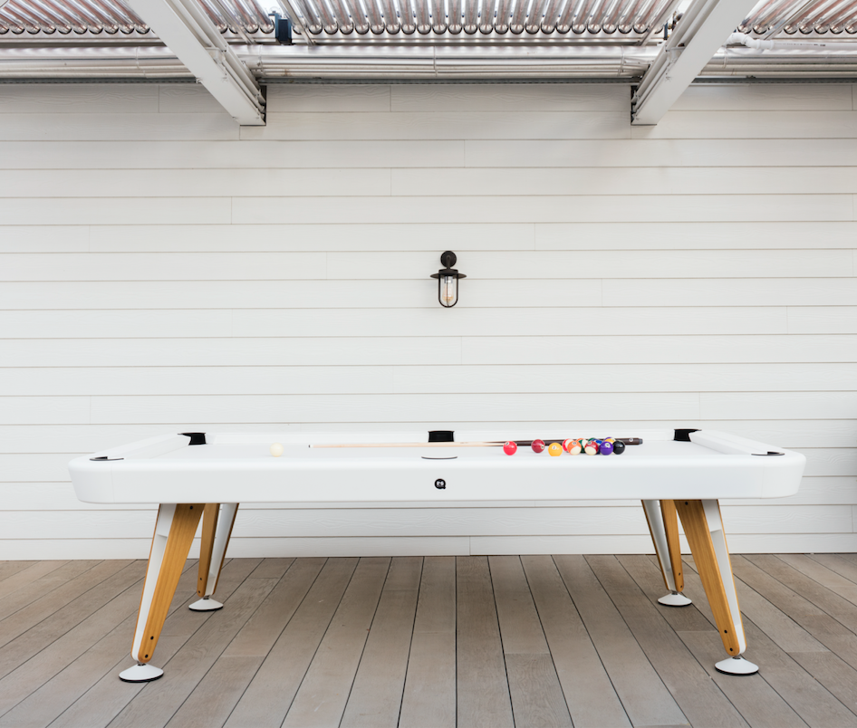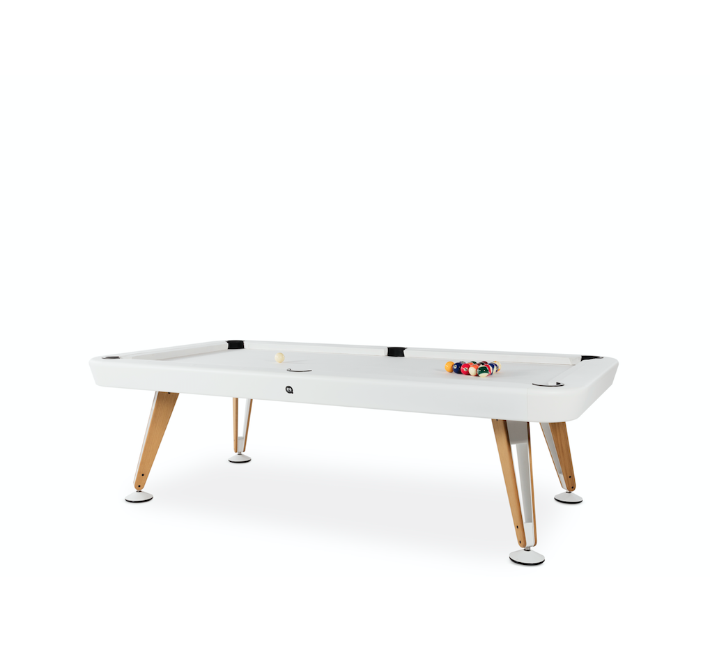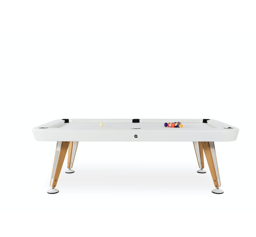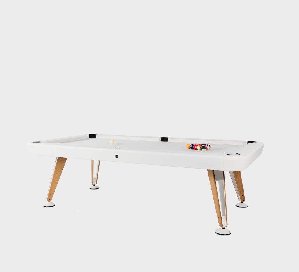 The Diagonal Outdoor Pool Table by Yonoh Studio for RS Barcelona brings the excitement of billiards to the open air, combining refined aesthetics with durable, weather-resistant materials. Inspired by the perfect lines of a classic pool table, its design is defined by sleek diagonal legs that provide both stability and a contemporary edge.