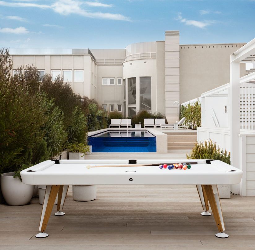 Designed to withstand the elements without compromising style, this pool table seamlessly integrates into patios, gardens, and terraces. It can also be paired with an optional dining top for added versatility, transforming it into a stylish outdoor dining or work surface.