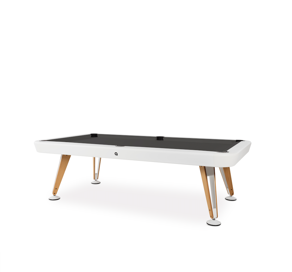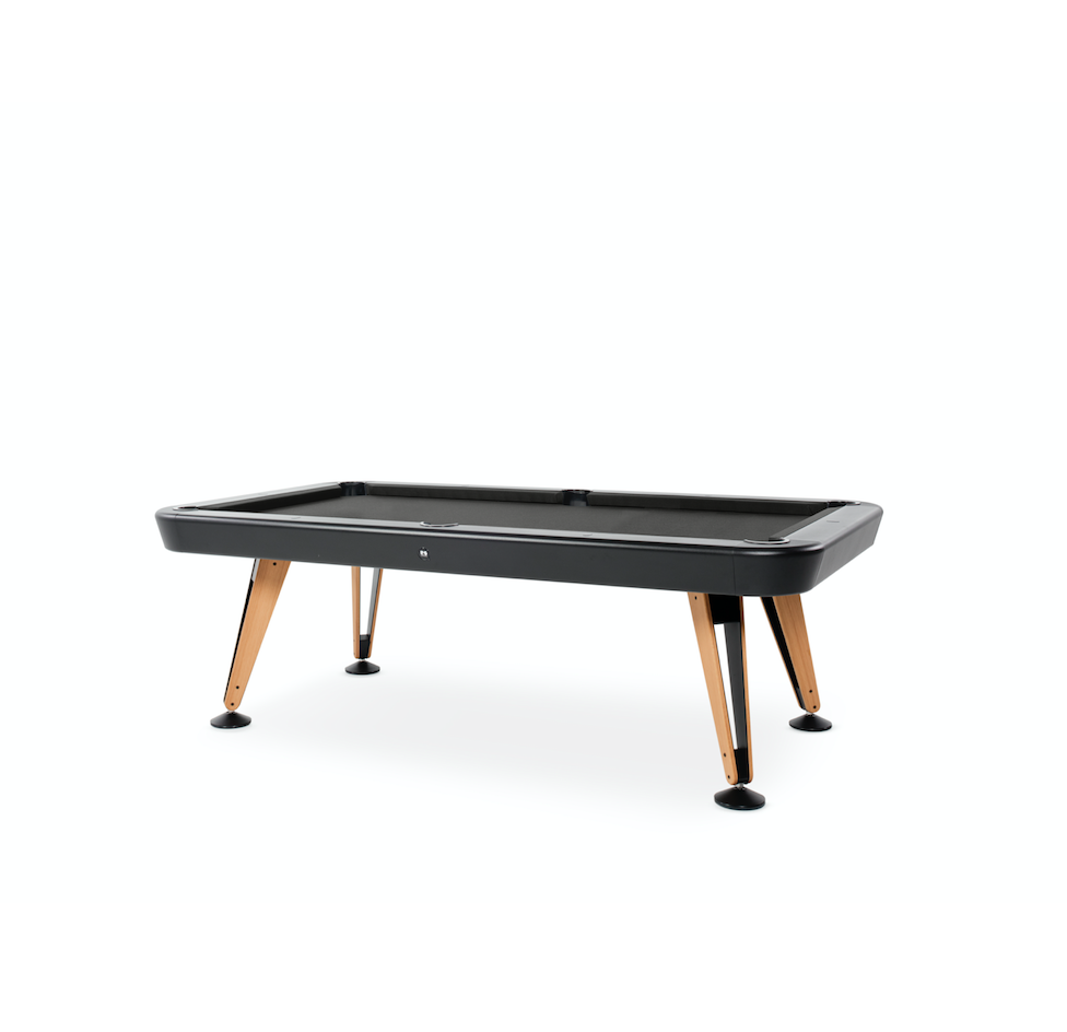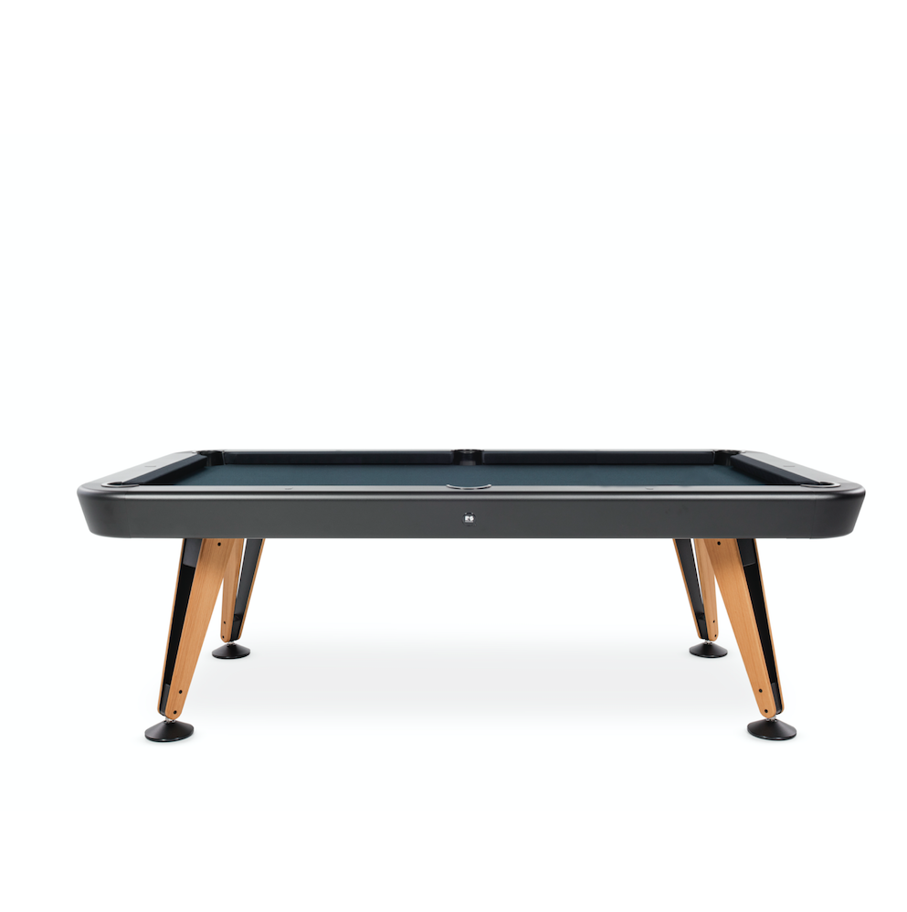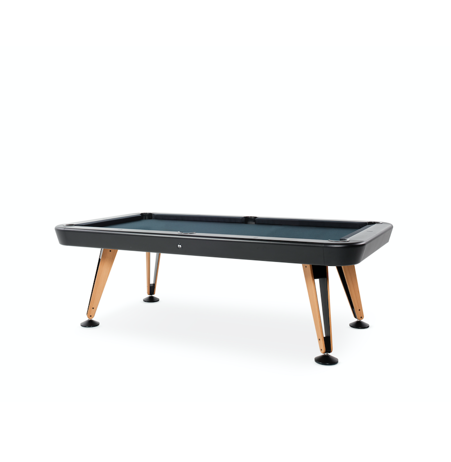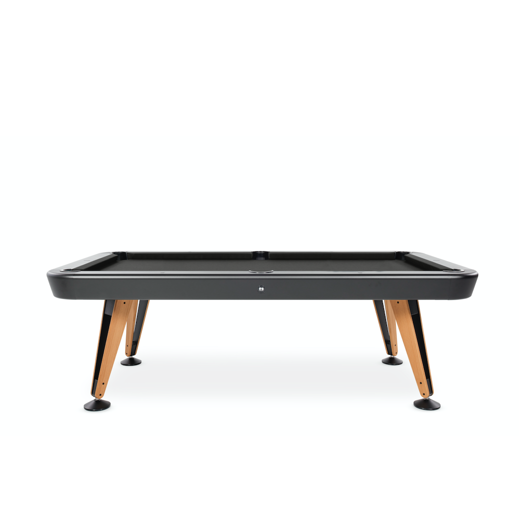 Built for outdoor enjoyment, the Diagonal Outdoor Pool Table features a high-quality one-piece slate playing surface, ensuring professional-level gameplay. Its structure is crafted from sturdy steel with a cataphoretic coating for extra durability, while the Iroko wood details add warmth and elegance. The table is available in a variety of finishes, with customizable cloth colors to complement any outdoor setting.