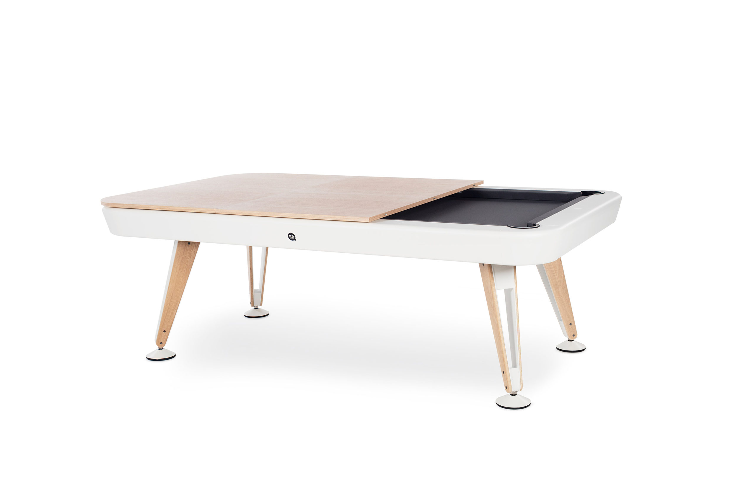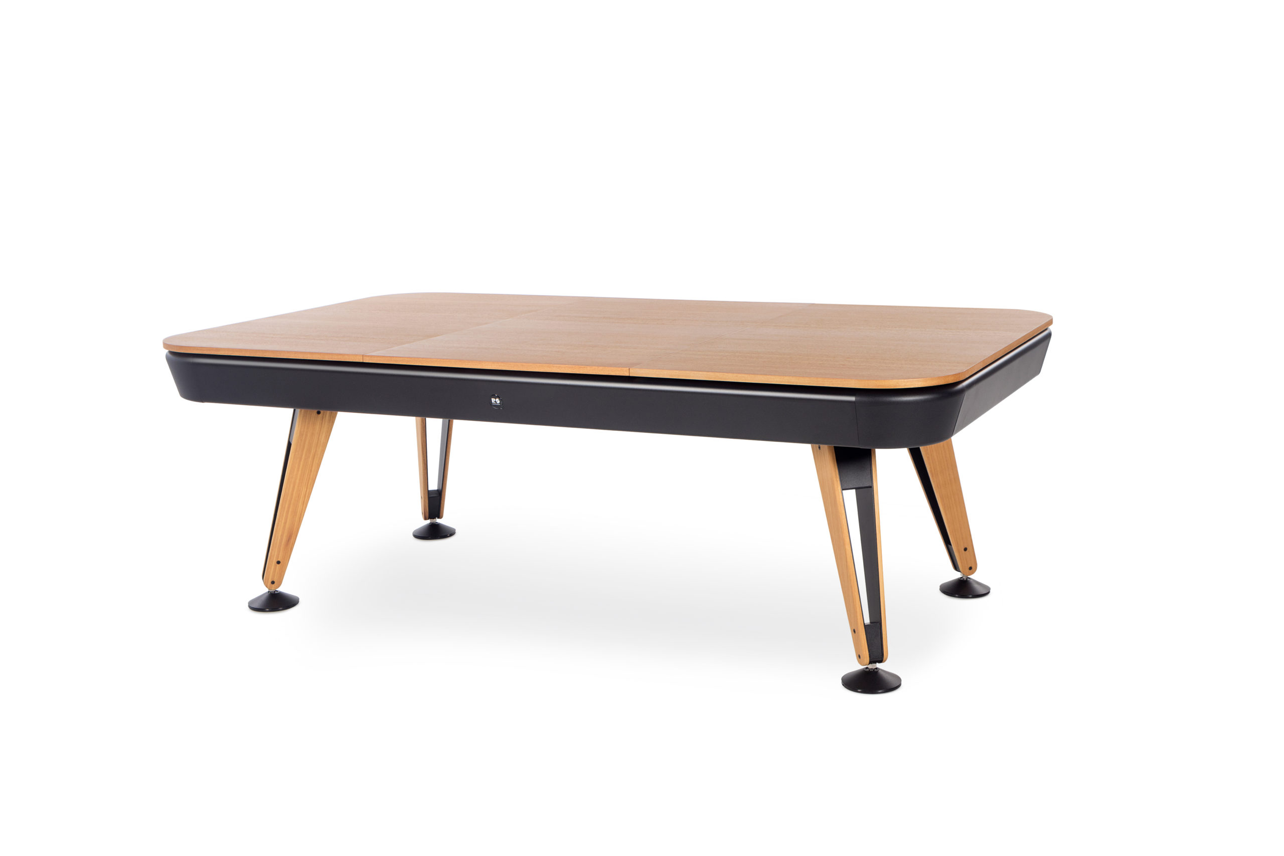 The Diagonal Indoor Wooden Pool Table Top by RS Barcelona transforms your Diagonal pool table into a multifunctional piece, seamlessly adapting from a game surface to a sleek dining or work table.