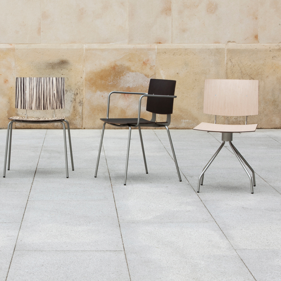 Seat available in phenolic resin laminate options or fully upholstered in all fabric finishes supplied by Ondarreta.