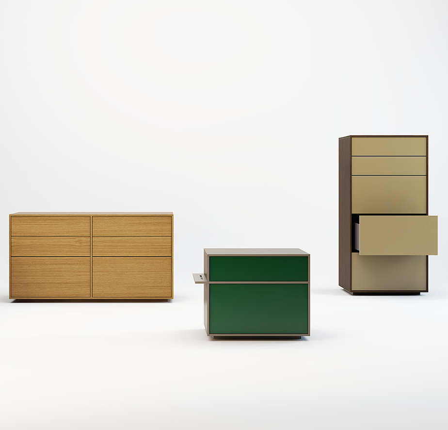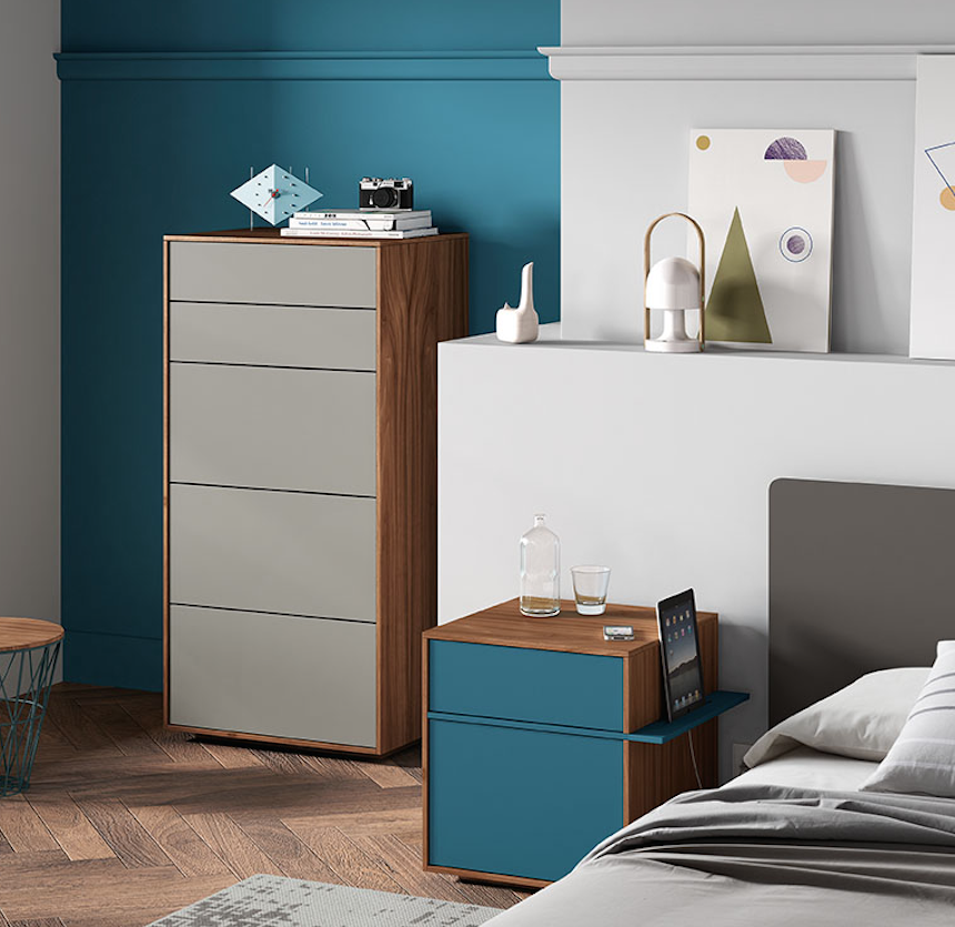 Furniture Collection whose aesthetic sobriety makes it fit in every bedroom. Its main feature is the fine frame and slim lines, which contribute to the light profile of this family. Available in a range of colours and timber finishes, there is room to personalise this collection for many spaces.