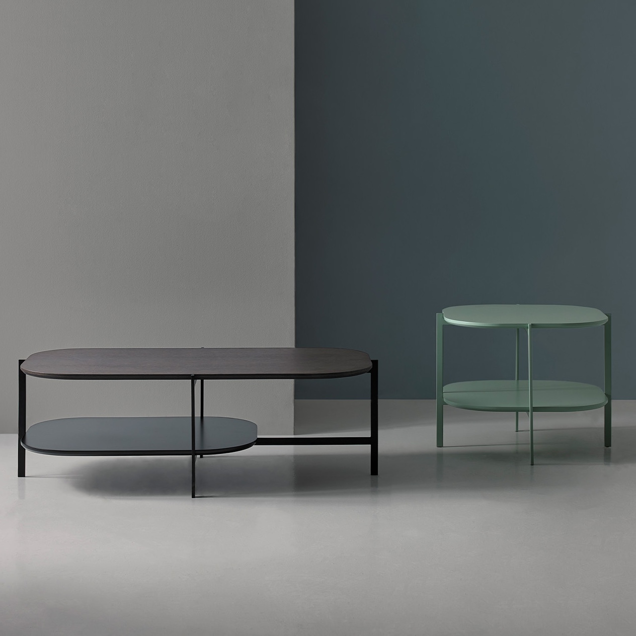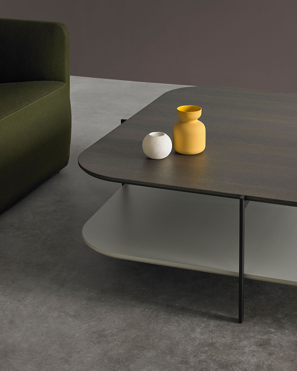 The EXO side and coffee table is characterised by a metal structure that acts as an essential part of the design. Its perfect combination with the materials of the top and the shelf create an elegant and unique ensemble.