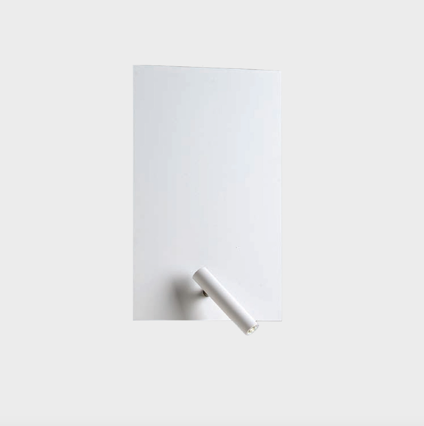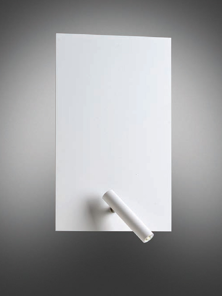 Flat is a happy combination of a metallic rectangle of indirect light that bathes all the space around it, and a LED line integrated in its reading arm, that can be directed to where the user wishes.