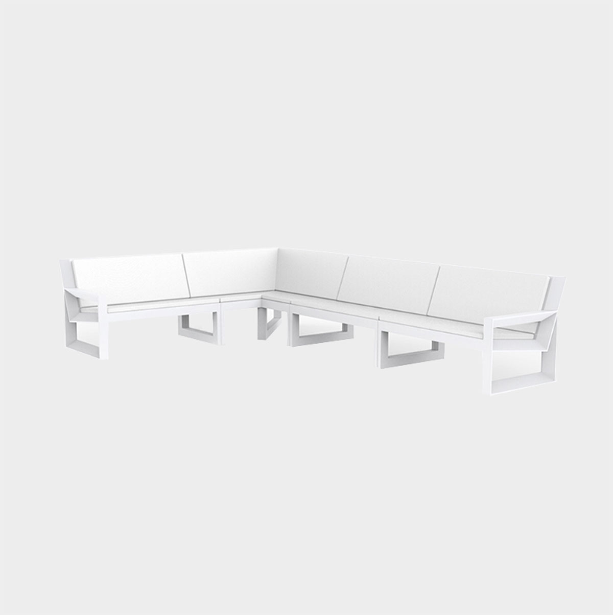 FRAME Collection comes from generating serene and timeless shapes using framework as the elementary geometry. The FRAME section is flared creating pieces of visual lightness while still definitive and resistant. FRAME meets a wide range of needs in any outdoor space thanks to its variety of pieces. The lightness of the pieces make adjustments to their distribution easier and comfortable.