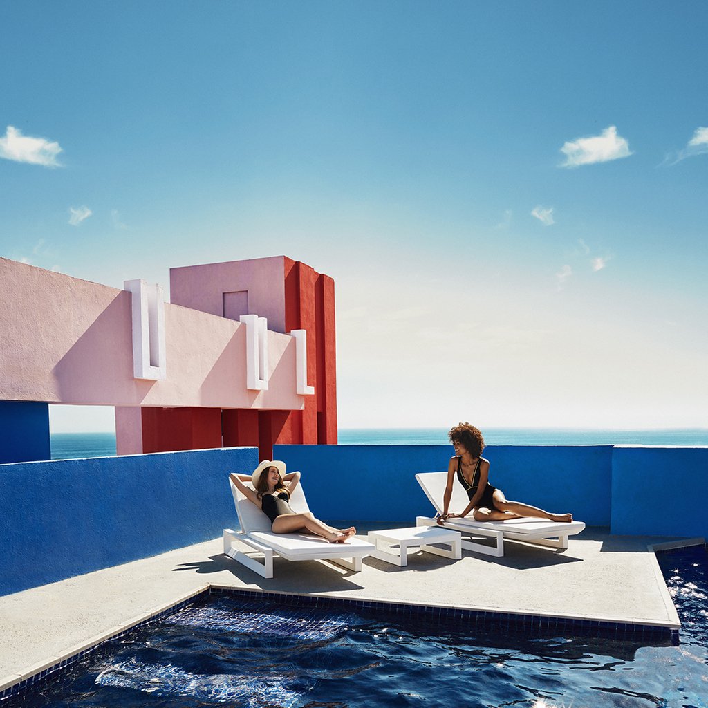 Its ergonomic design ensures optimal relaxation, while its clean, geometric silhouette seamlessly integrates into modern terraces, poolside areas, and resorts. Available in a range of colours and finishes, including matte, lacquered, and illuminated LED options, the Frame Sun Chaise is a sophisticated choice for those who appreciate timeless design and outdoor luxury.