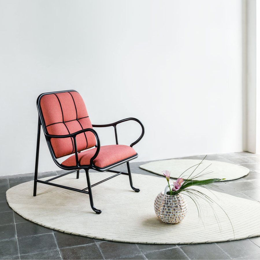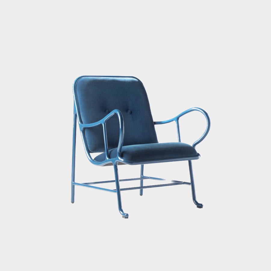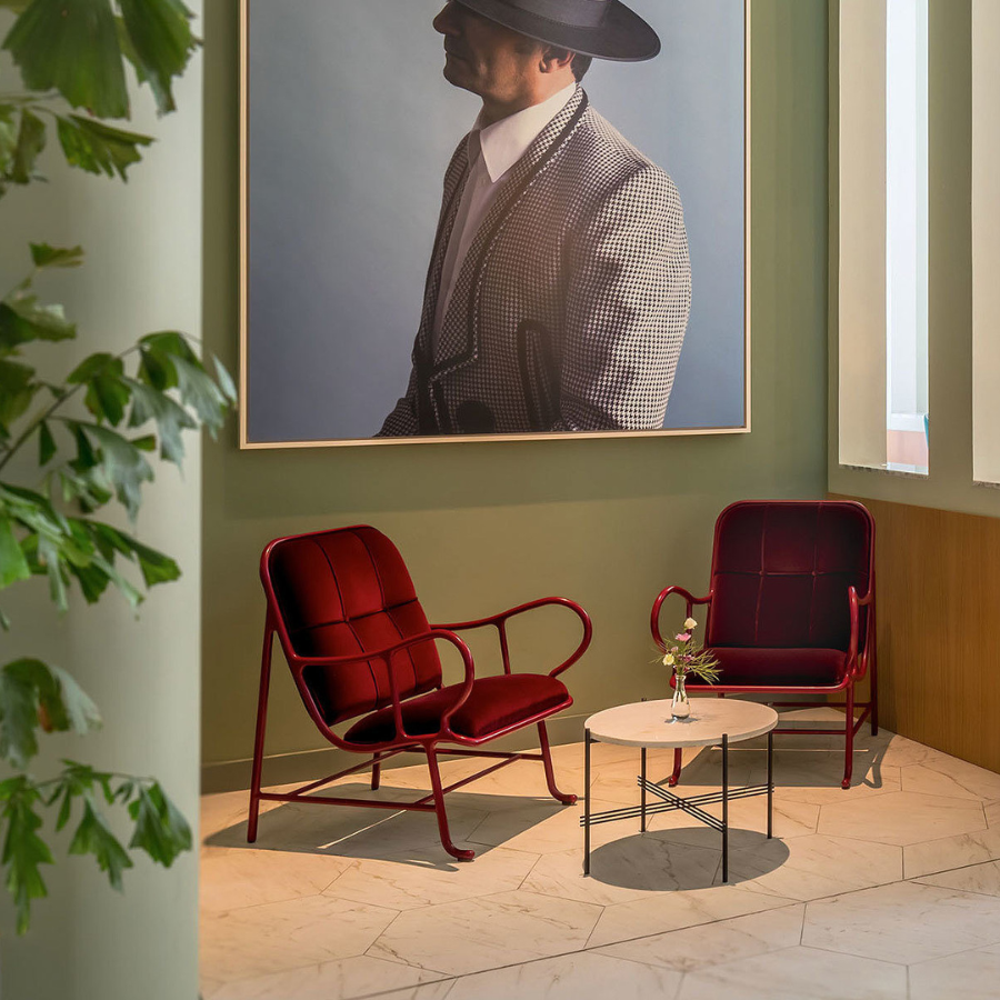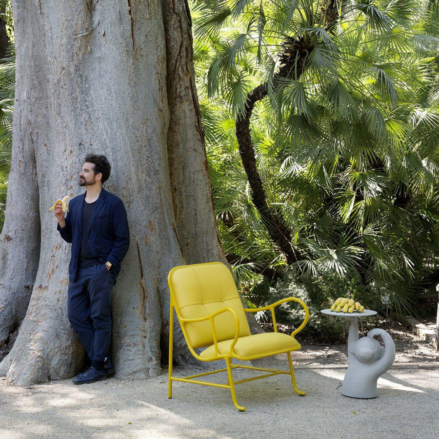 The Gardenias Armchair, designed by Jaime Hayon for BD Barcelona, brings a playful character and elegant form to indoor, outdoor, garden, and terrace spaces. Its light and versatile frame, available in various colours, features flowing armrests and horizontal aluminium strips on the backrest, offering both stability and style. Suitable for both indoor and outdoor use, the armchair comes in white, grey, and green with detachable, water-repellent upholstery.
