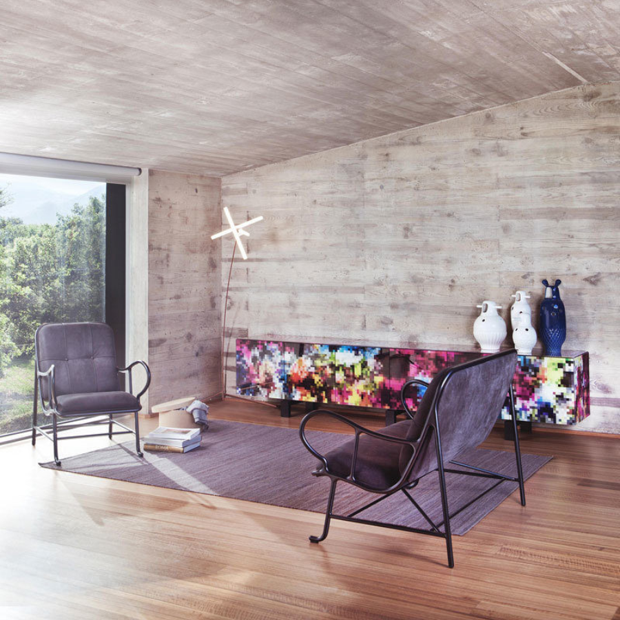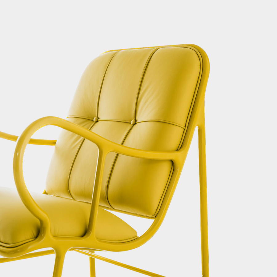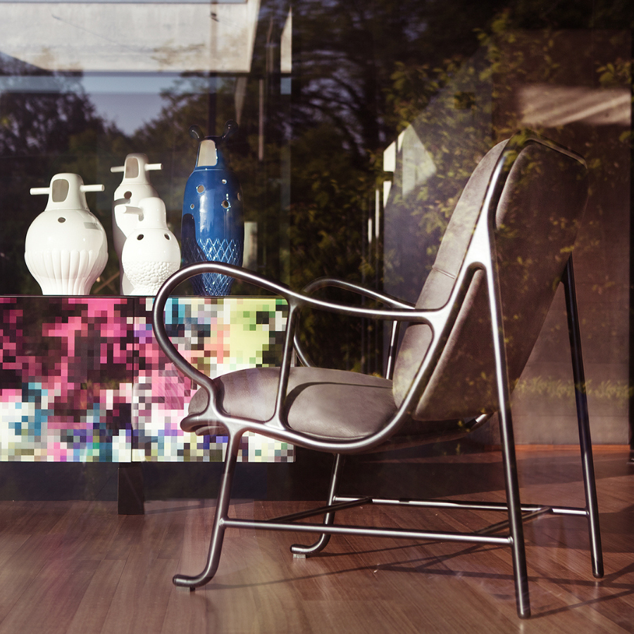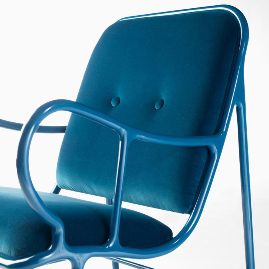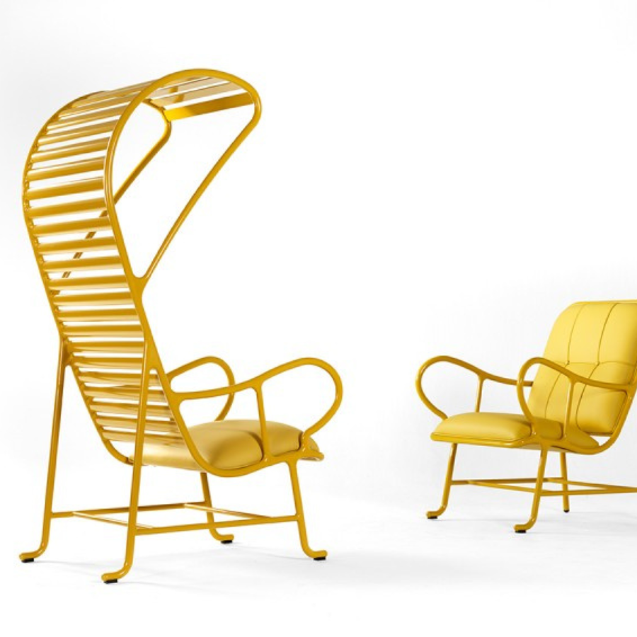 The Gardenias Armchair, designed by Jaime Hayon for BD Barcelona, brings a playful character and elegant form to indoor, outdoor, garden, and terrace spaces. Its light and versatile frame, available in various colours, features flowing armrests and horizontal aluminium strips on the backrest, offering both stability and style. Suitable for both indoor and outdoor use, the armchair comes in white, grey, and green with detachable, water-repellent upholstery.