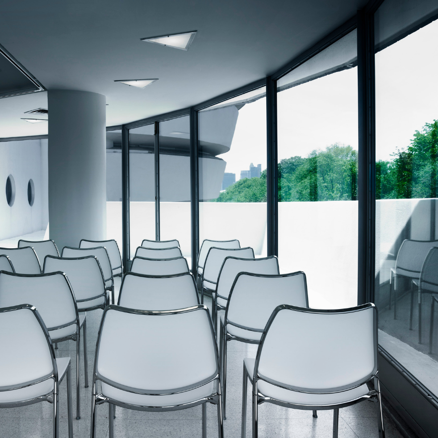 Range of seat finishes in polypropylene, mesh, and a range of fabrics, leathers and eco-leathers supplied by STUA.
