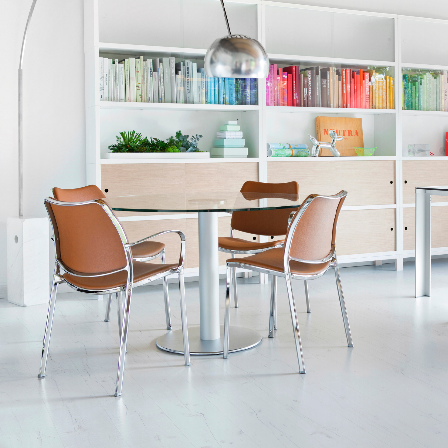 The Gas Chair collection offers a versatile range of seating options, including side chairs, armchairs, task chairs, and swivel chairs. Every detail—from the seamless joints to the elegant curves—has been meticulously crafted to create a chair as light and graceful as its namesake.