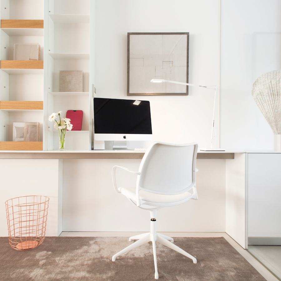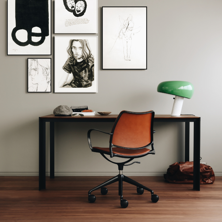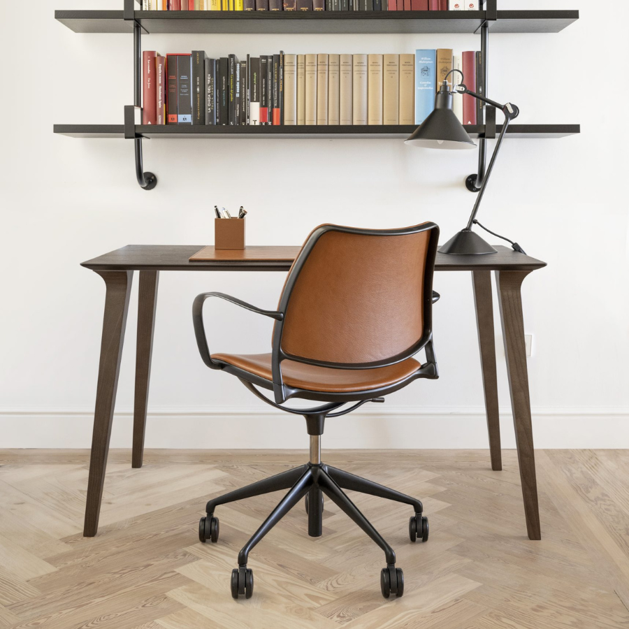 Designed by Jesús Gasca, the Gas Swivel Chair combines light, fluid lines with exceptional comfort. Its ergonomic design features a curved seat and backrest that gently cradle the body, providing excellent lumbar support. The height-adjustable seat and caster base make it a versatile task chair, ideal for both home and office use.