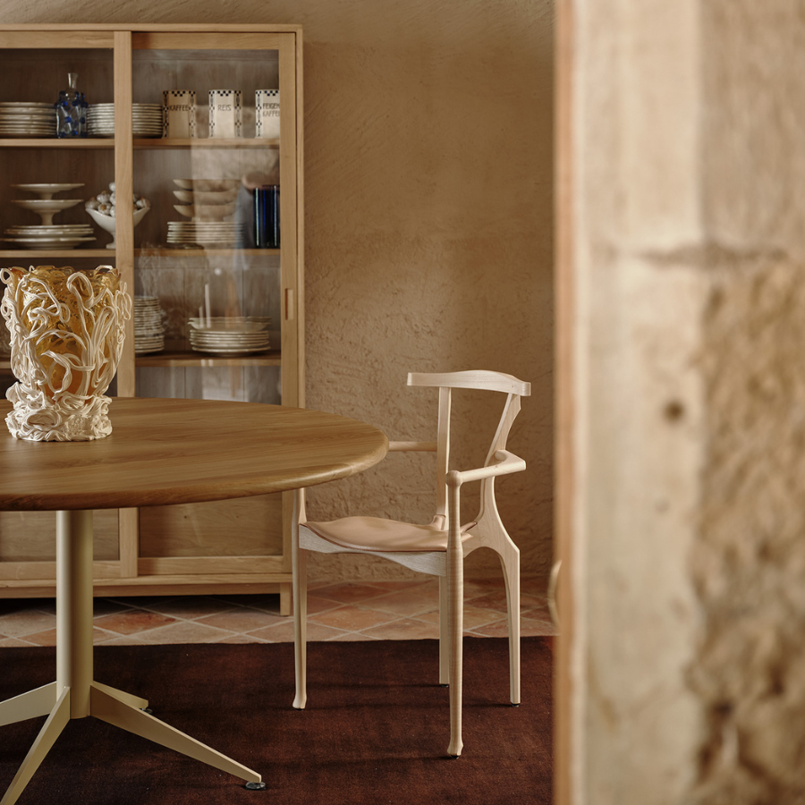The Gaulino Chair, a masterpiece by celebrated designer Oscar Tusquets, is a harmonious blend of sculptural elegance and functional design. Inspired by both Antoni Gaudí and Carlo Mollino, the chair’s fluid, organic form is a testament to Tusquets’ reverence for craftsmanship and artistic legacy.