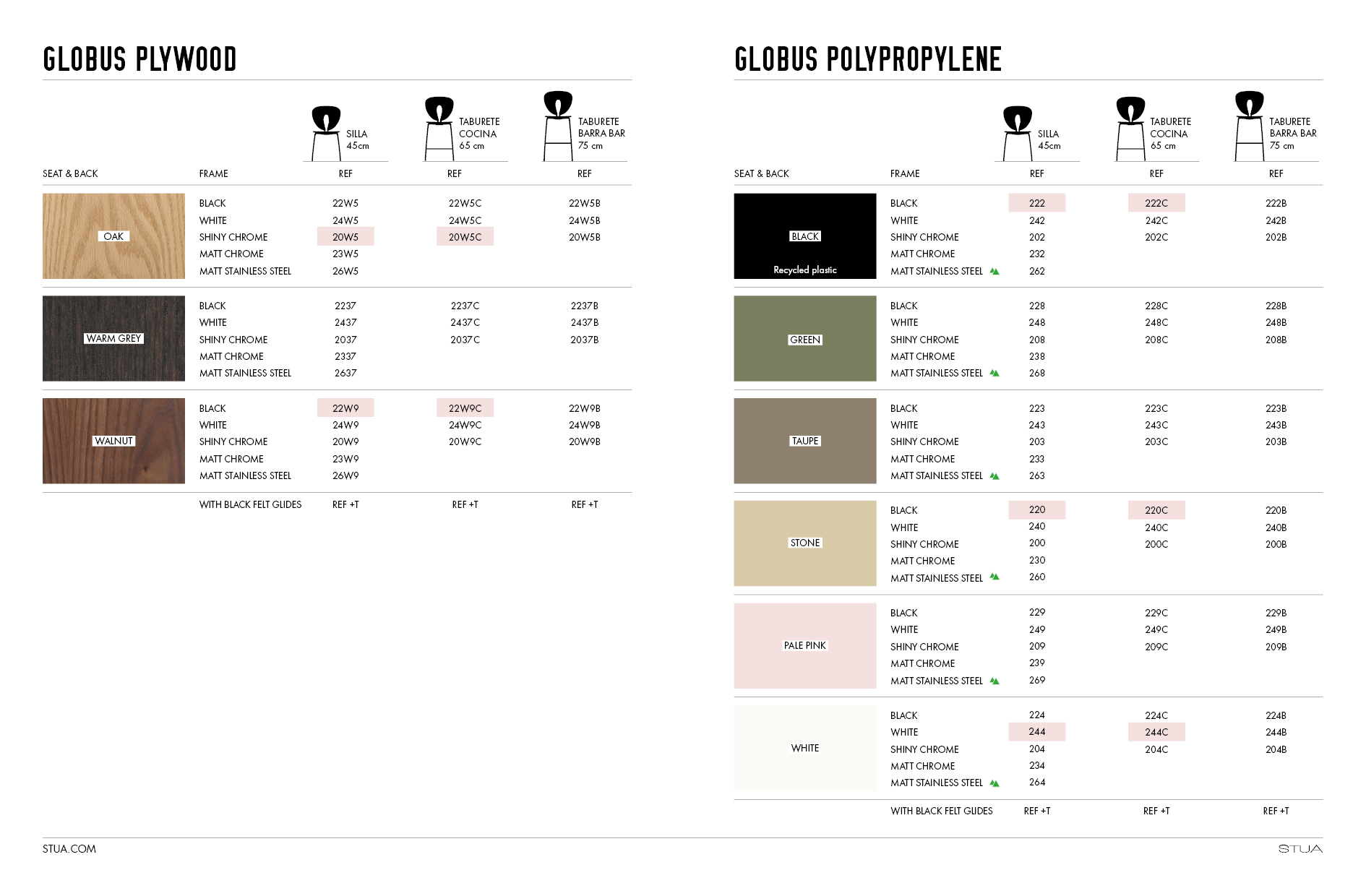 With two seat heights: 65cm for kitchen counters and 75cm for bars. Now we can match the Globus dining chair with the new stools.