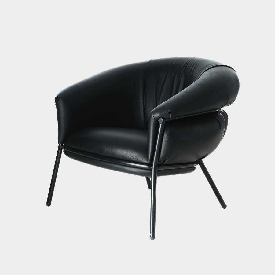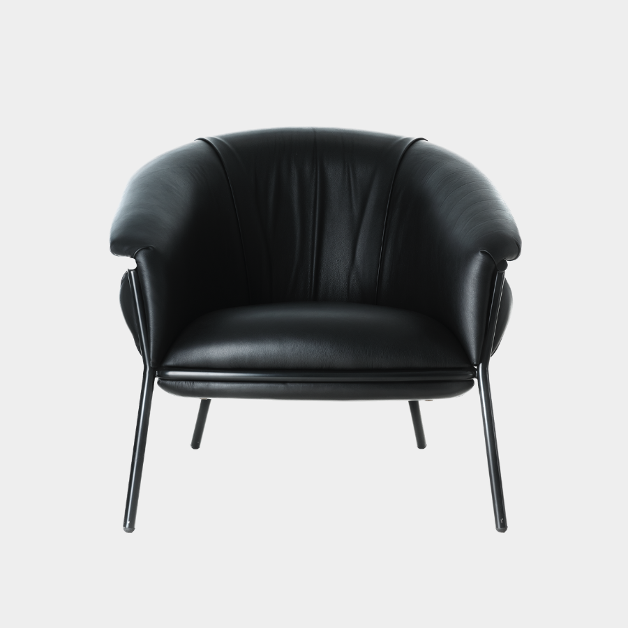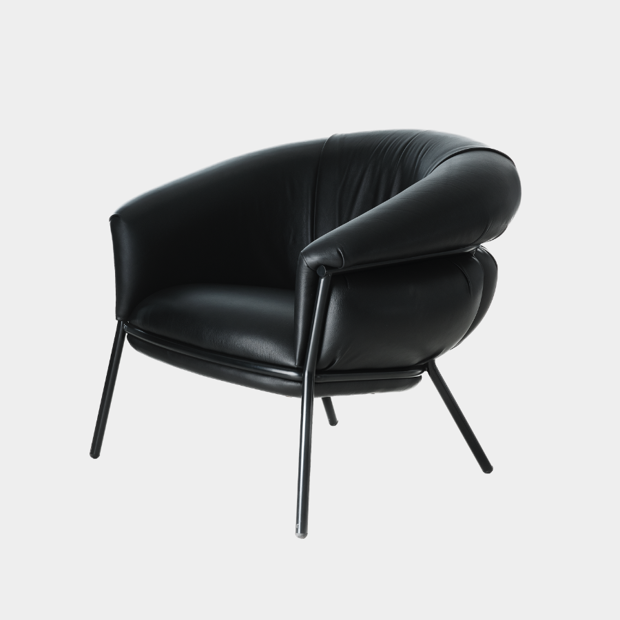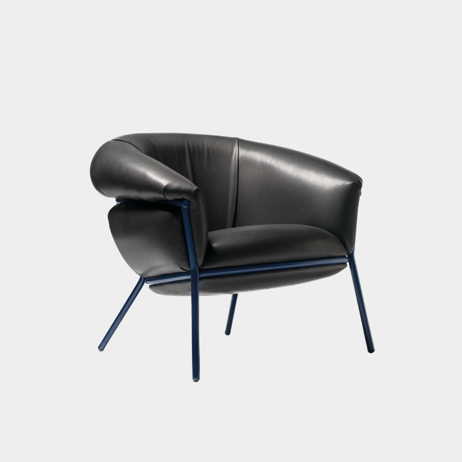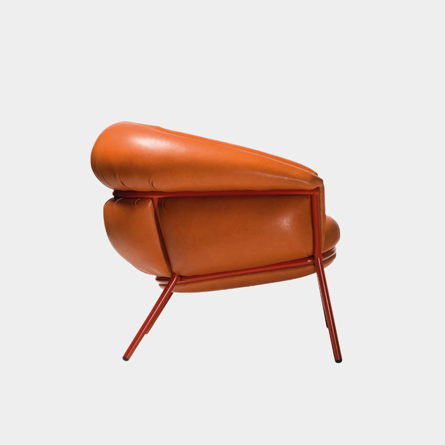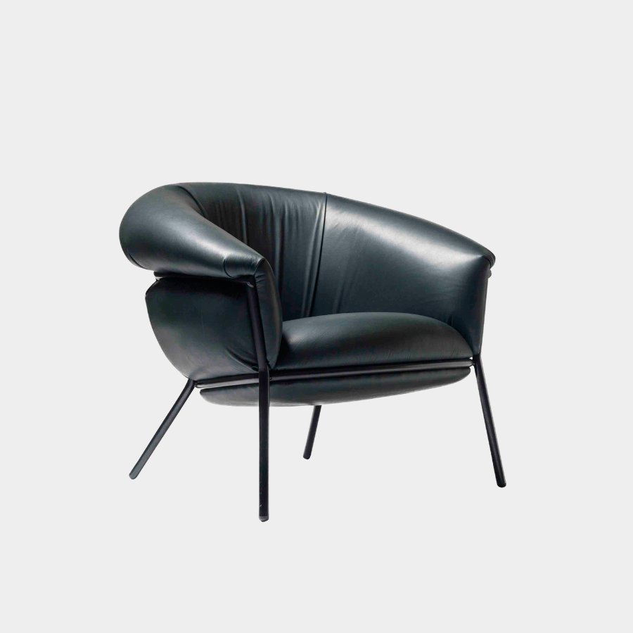 “Grasso is not fat. Grasso is more than fat. It’s overflowing.” This is how designer Stephen Burks describes his Grasso collection for BD Barcelona. The Grasso Armchair embodies this concept of “ultra-comfort,” with plush leather upholstery that spills over a bare iron structure, creating a striking contrast between rugged industrial design and luxurious comfort.