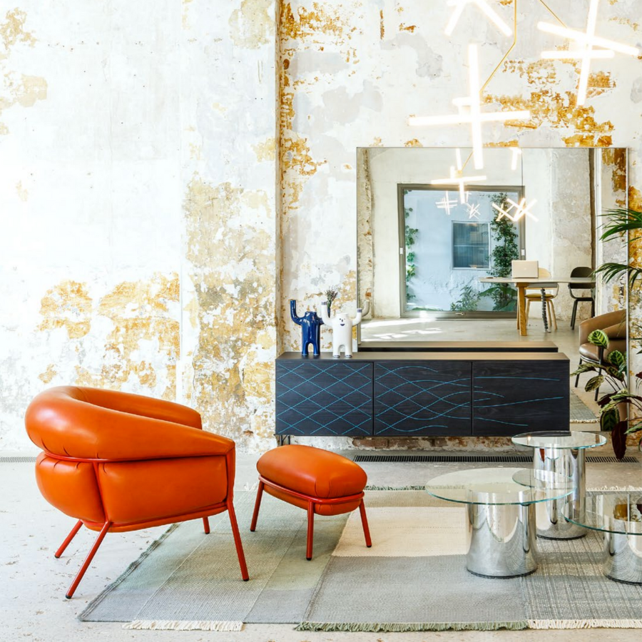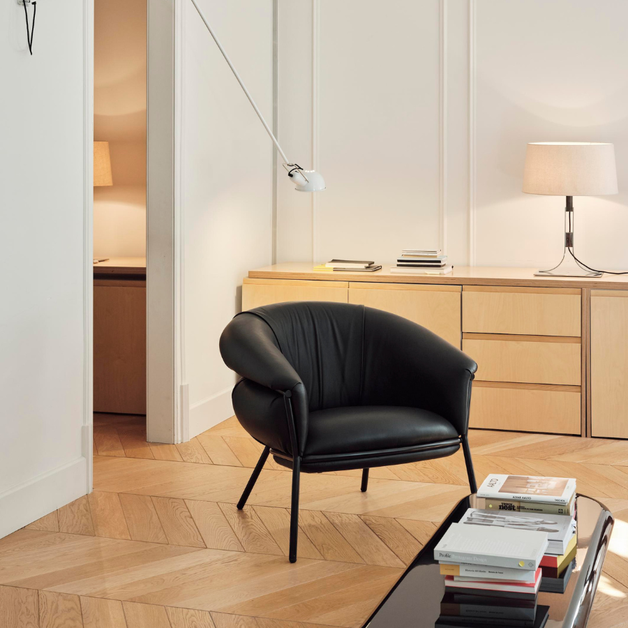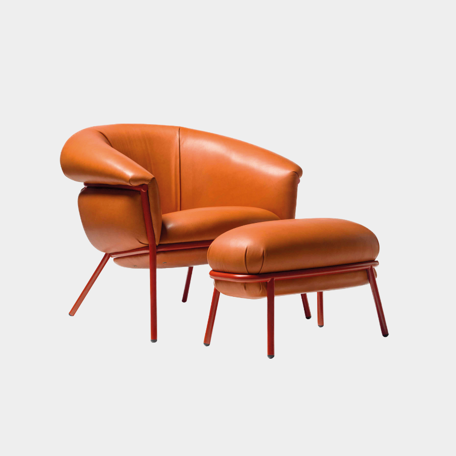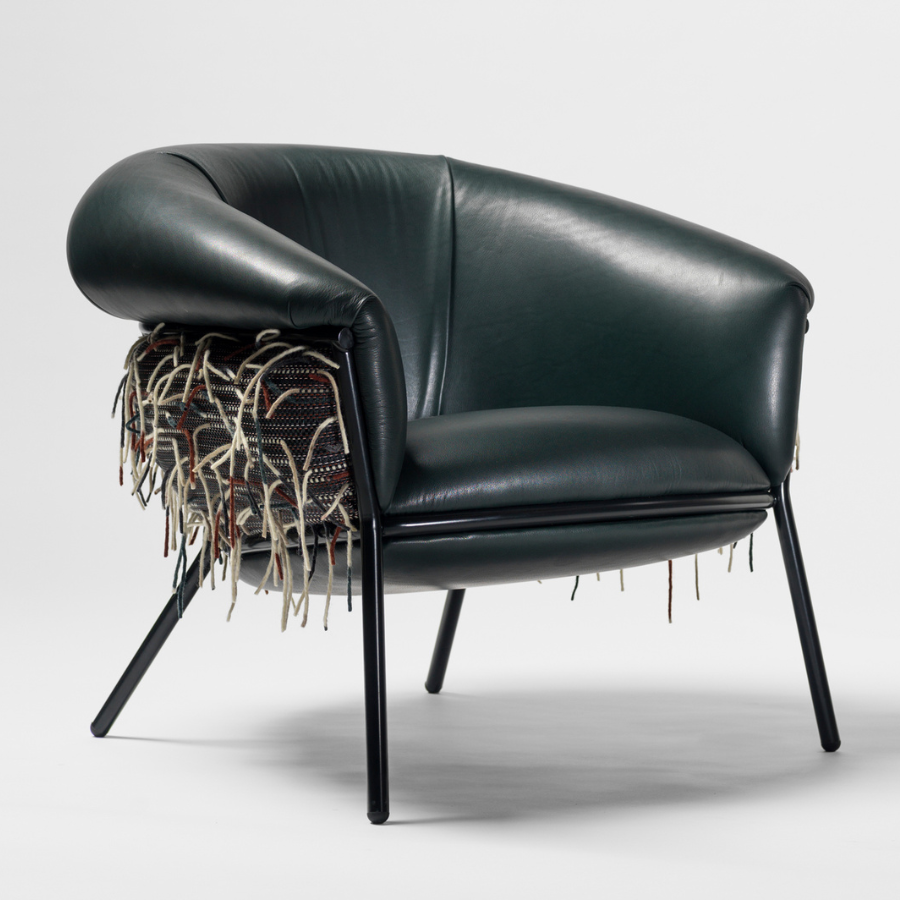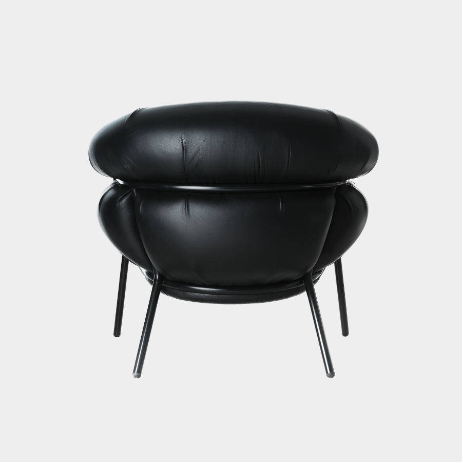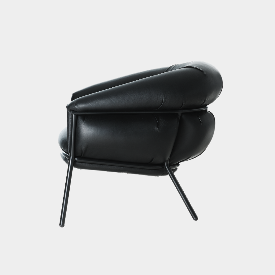 “Grasso is not fat. Grasso is more than fat. It’s overflowing.” This is how designer Stephen Burks describes his Grasso collection for BD Barcelona. The Grasso Armchair embodies this concept of “ultra-comfort,” with plush leather upholstery that spills over a bare iron structure, creating a striking contrast between rugged industrial design and luxurious comfort.