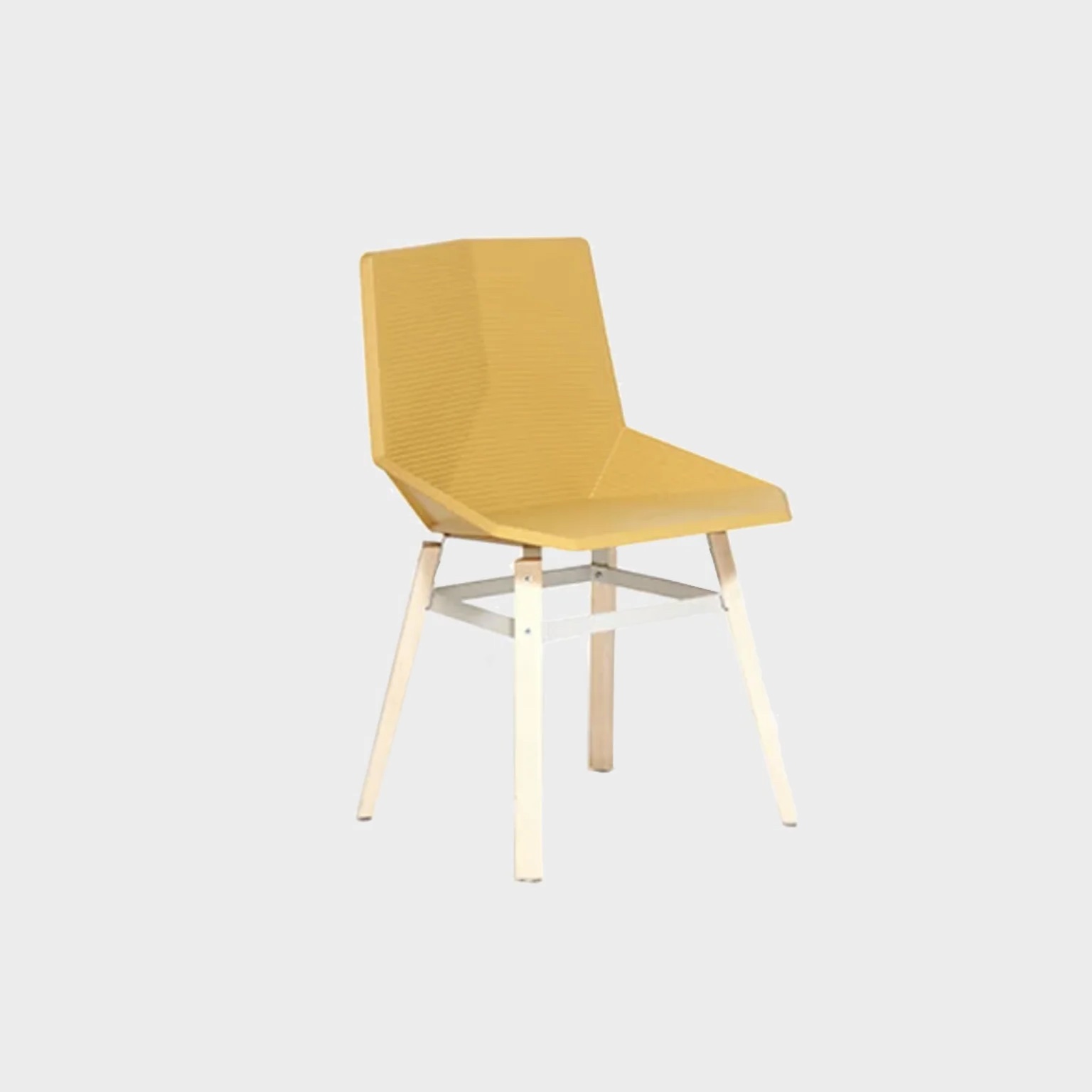The seat of this polypropylene chair is available in a range of tones that soften and transform its appearance, adapting to different decors. It’s ideal for livening up as bar or restaurant chair or also as living room or kitchen chair. The Green wooden chair is available in the following colours: white, ochre and orange.
