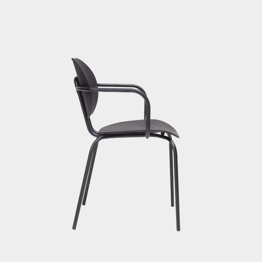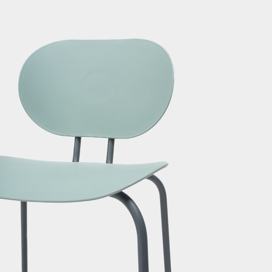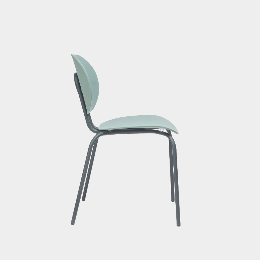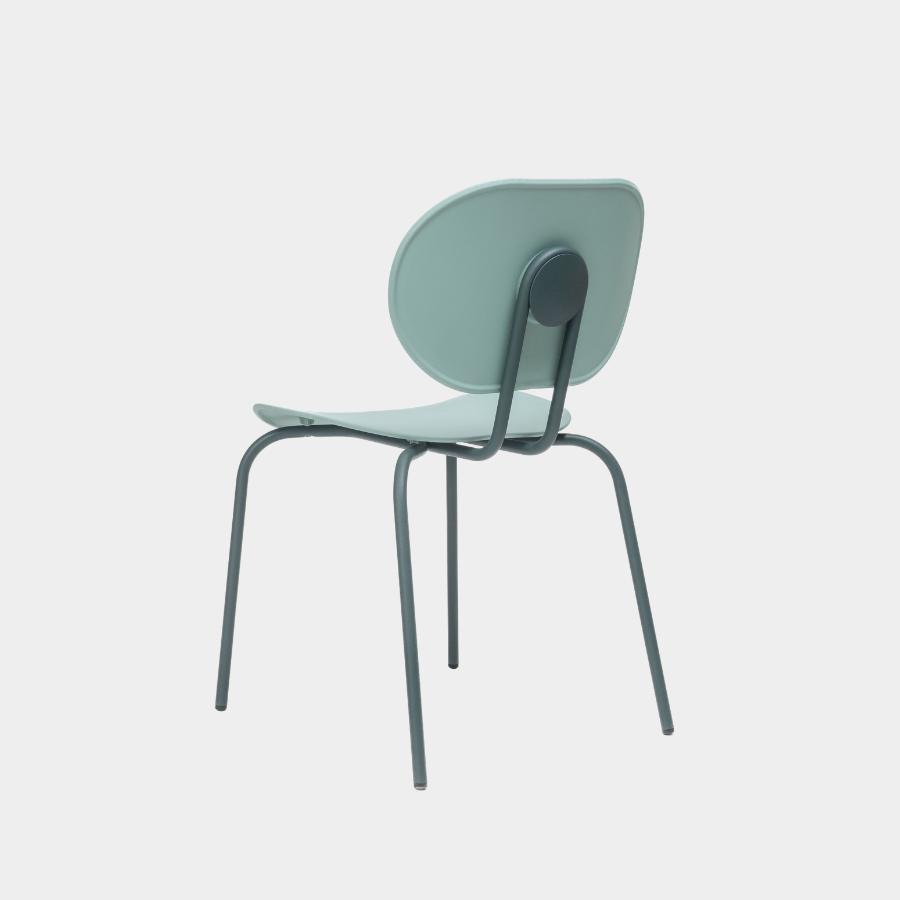 Metal legs finished in all Epoxy lacquers and seat and back in Polypropylene. Available in Polypropylene Re-wood upon request.