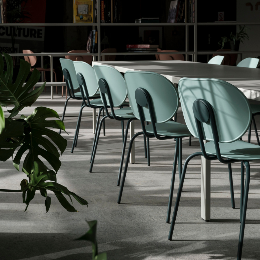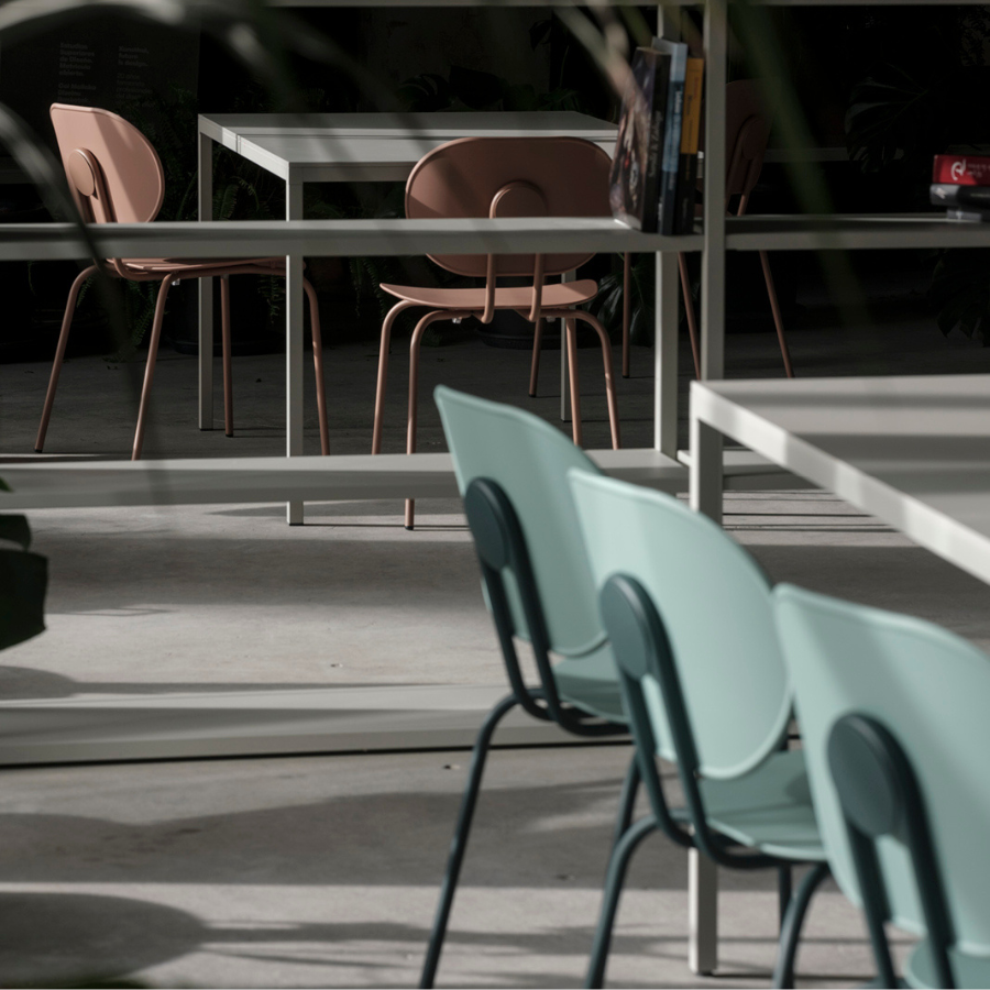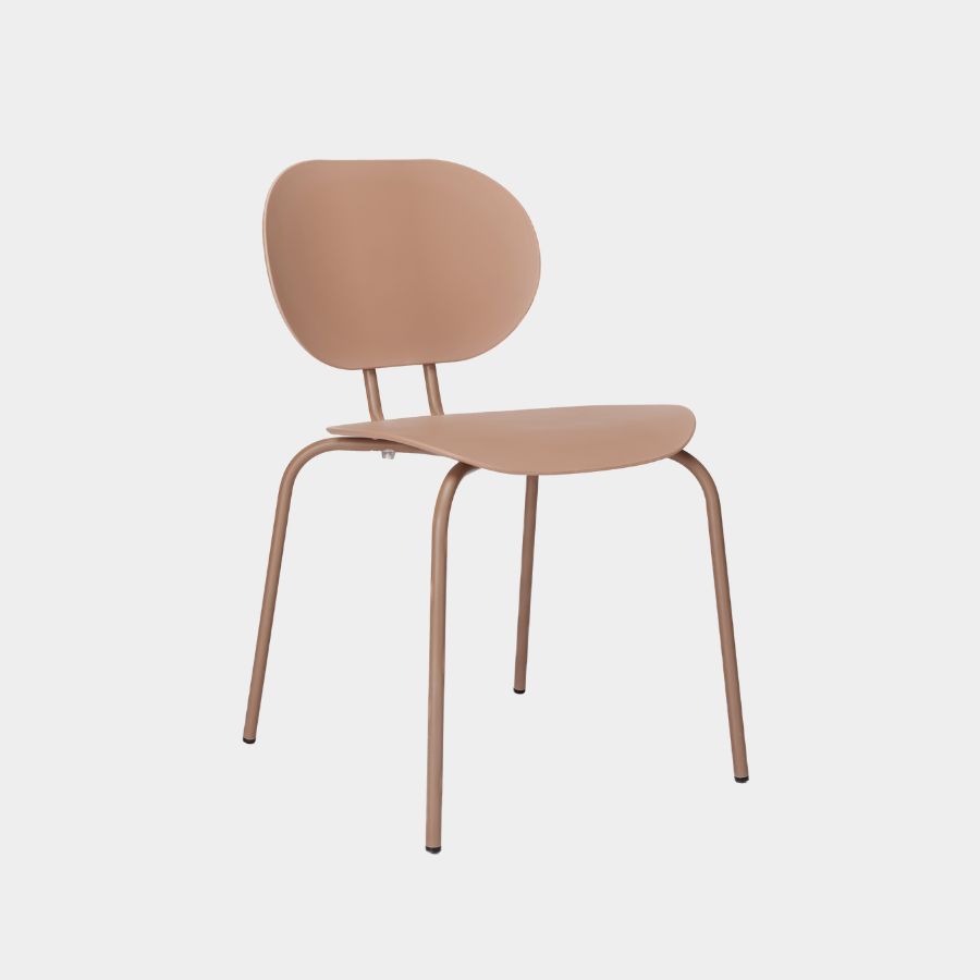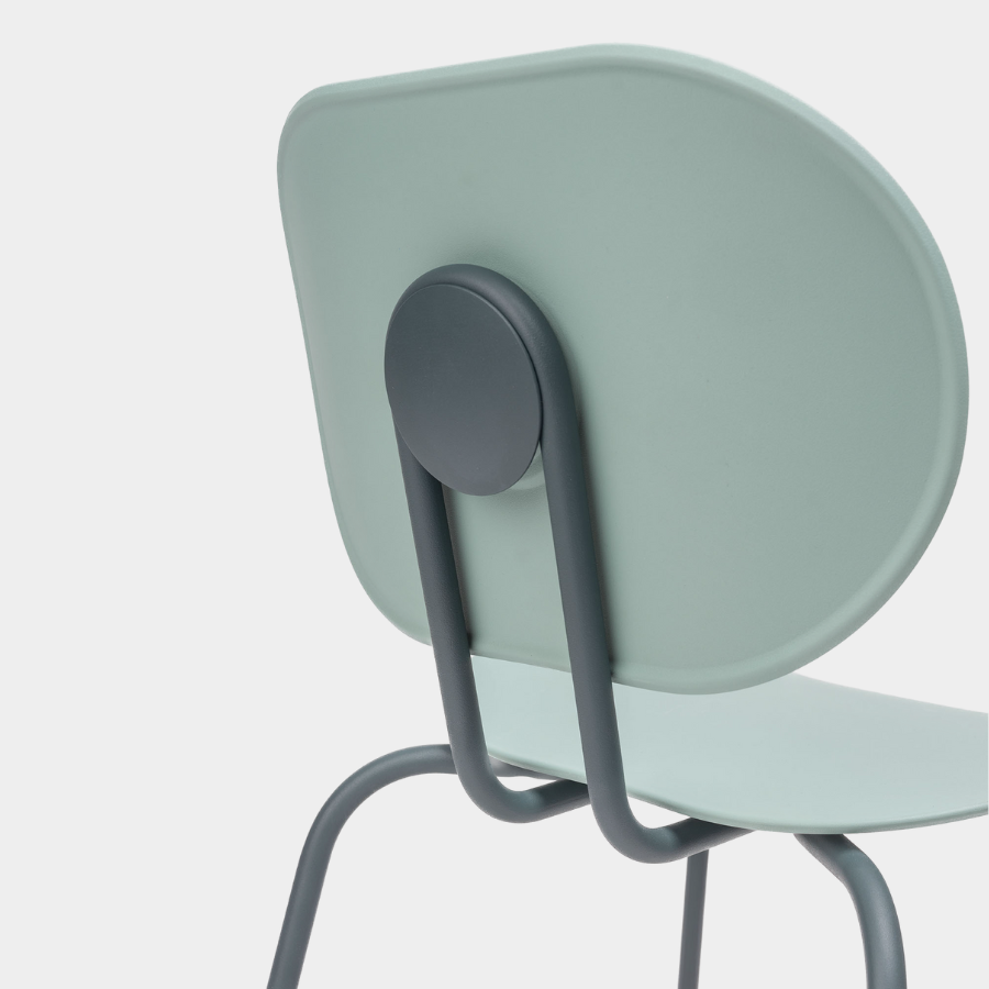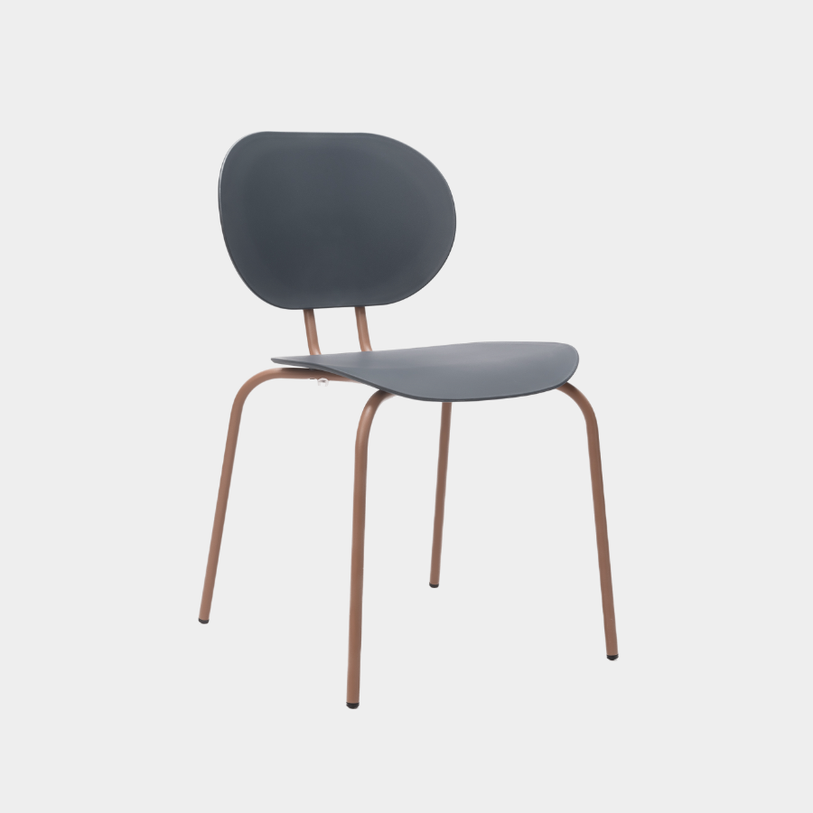 Metal legs finished in all Epoxy lacquers and seat and back in Polypropylene. Available in Polypropylene Re-wood upon request.