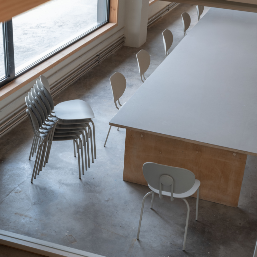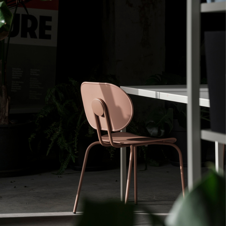 The Hari Chair, designed by ESTUDI{H}AC for Ondaretta, draws inspiration from the world of textile looms, blending industrial aesthetics with the delicacy of woven threads.