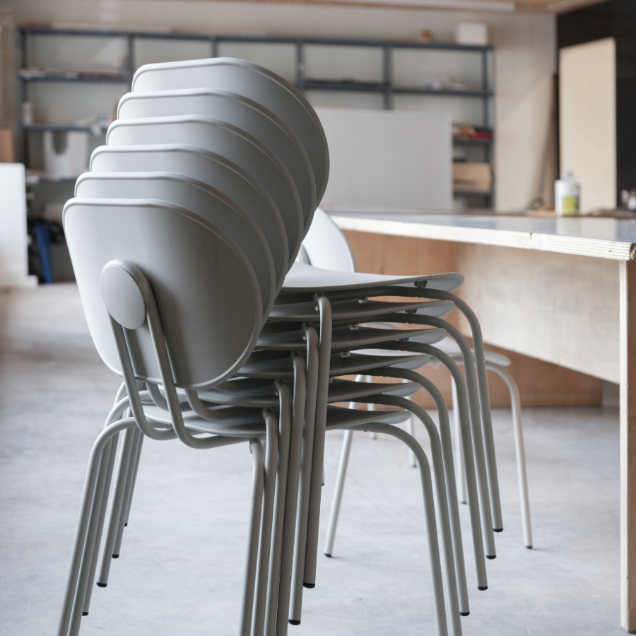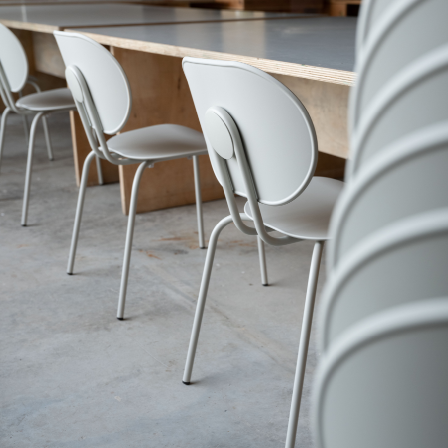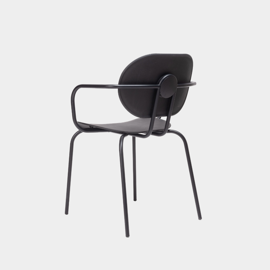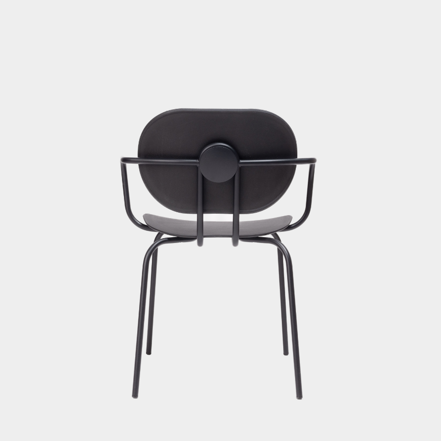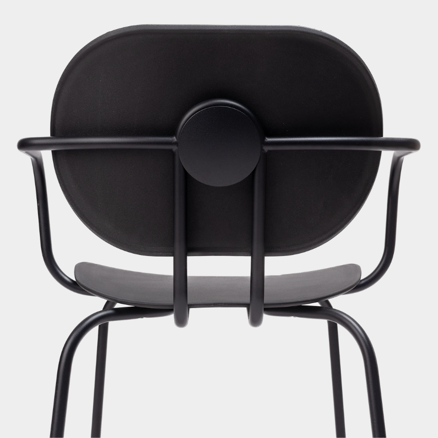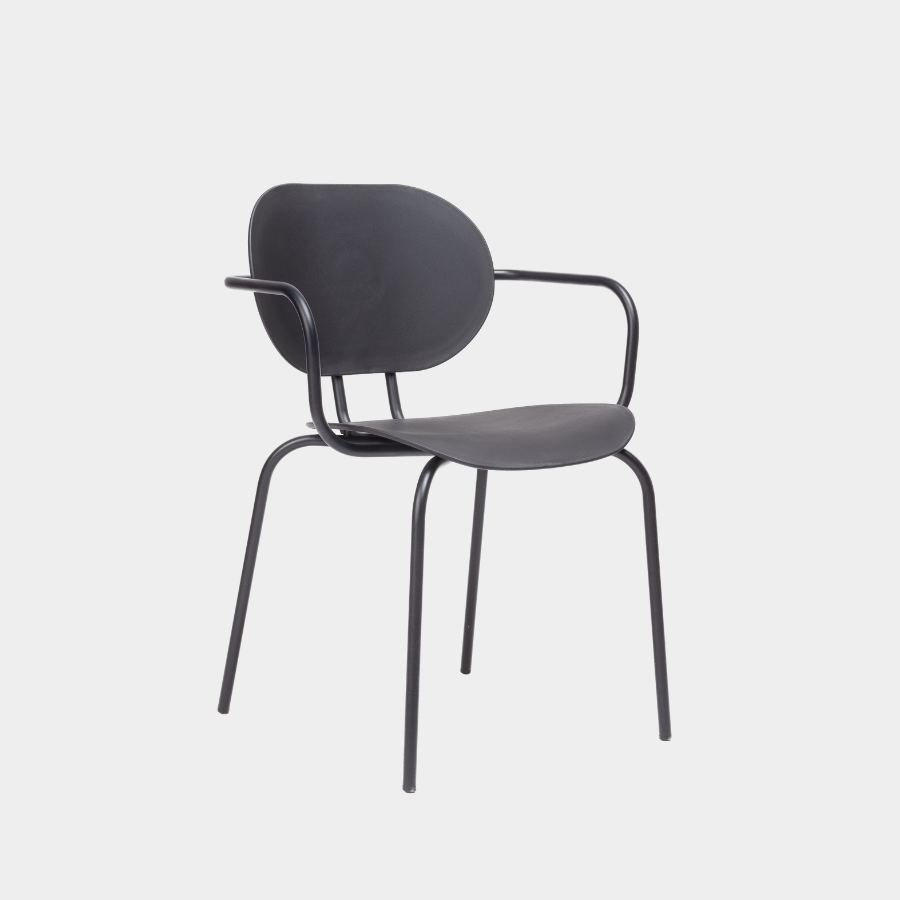 This subtle and elegant chair is part of a larger collection, including armchairs and stools, all featuring a unique combination of seats and backrests. Available with or without arms and made from durable polypropylene, the Hari Chair is both versatile and expressive. Its stackable design and carefully curated palette of materials make it a striking choice for any space, with a refined and industrial charm.