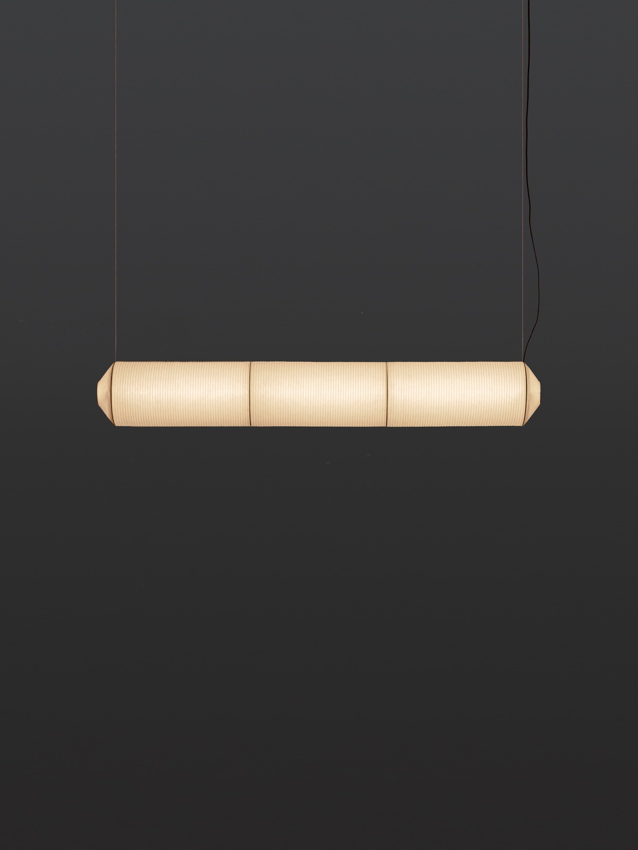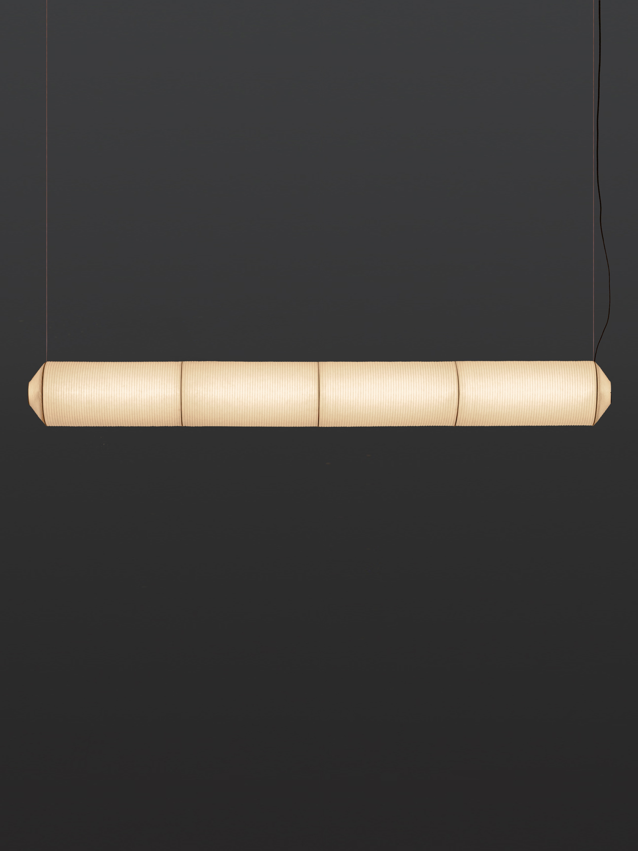 Available in various configurations and sizes, the Tekiò Horizontal Pendant can be customised to suit different spaces, from intimate residential settings to large commercial environments. Its elegant form and ambient glow make it an ideal statement piece for dining areas, lounges, and hospitality spaces, seamlessly merging craftsmanship with contemporary design.