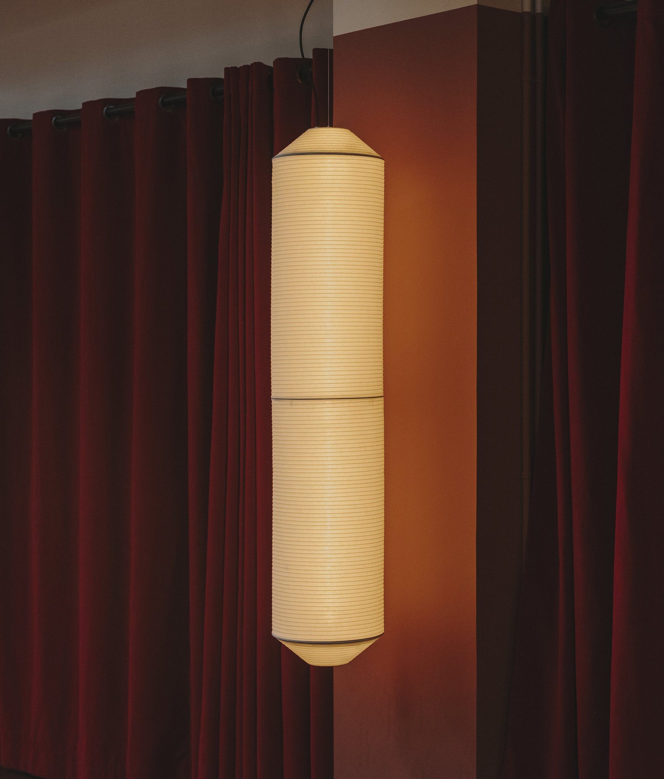 The Tekiò Vertical Pendant by Santa & Cole seamlessly merges tradition with innovation, offering a contemporary take on classic Japanese lanterns. Designed with a structure wrapped in handmade Washi paper, this luminaire diffuses a soft, warm glow, creating an inviting ambience.