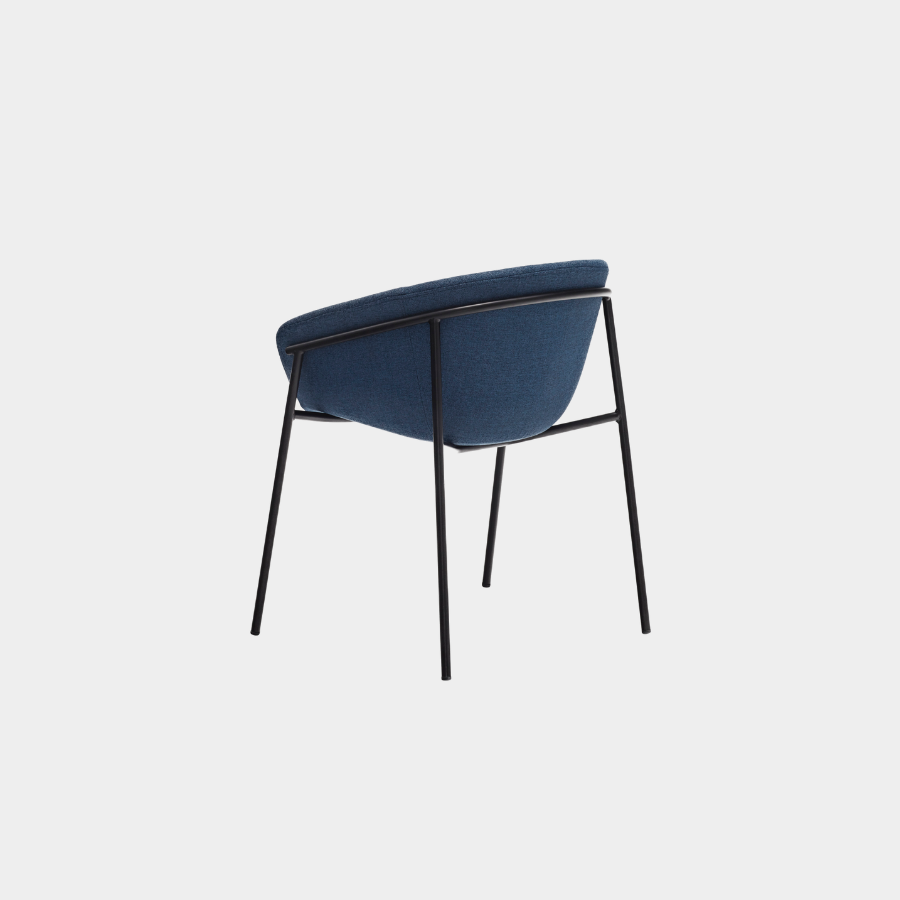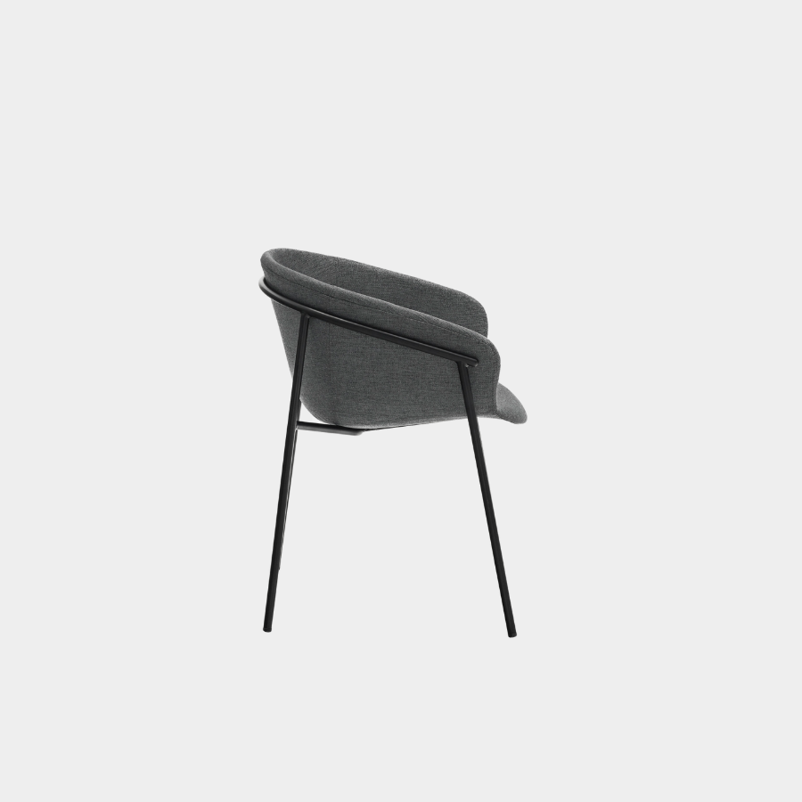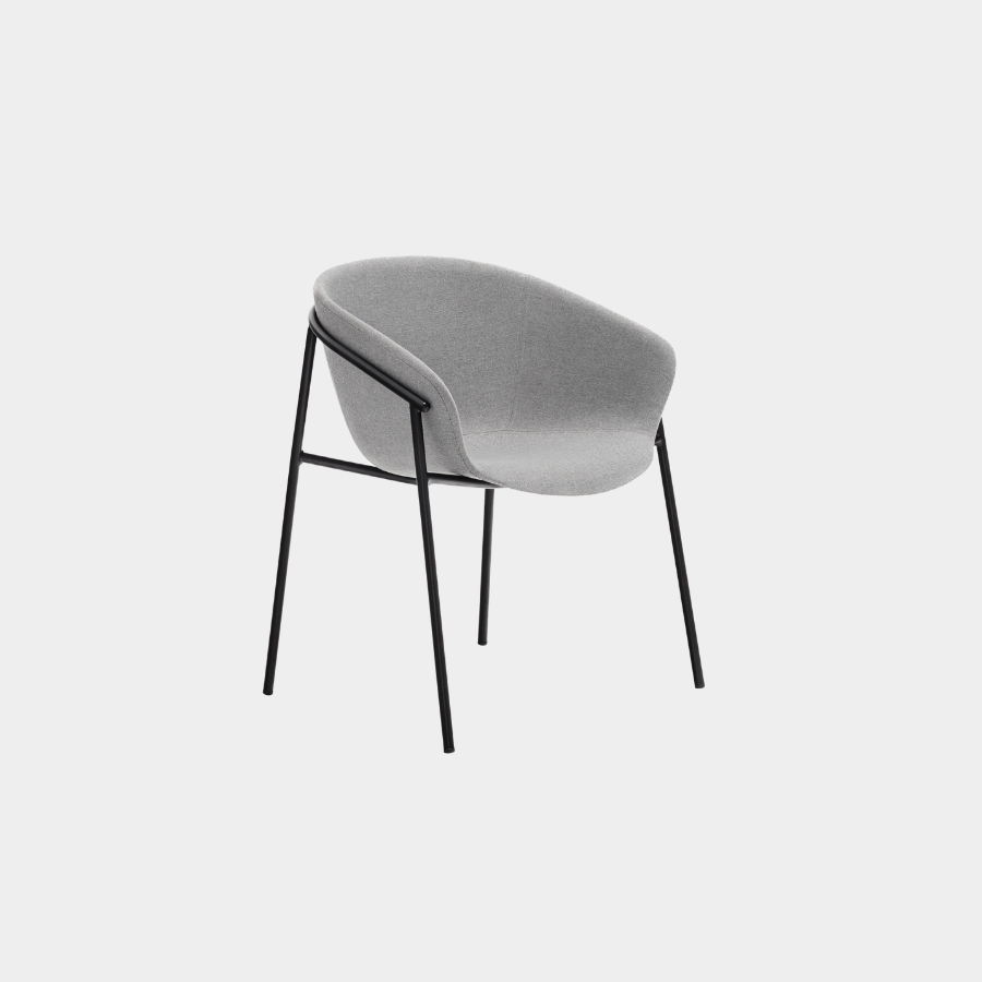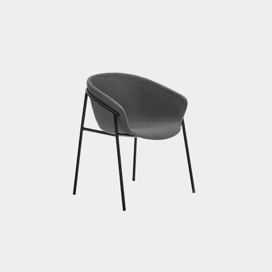 The Hug Chair, designed by Cambres Design for Teulat, is a masterful blend of comfort and modern aesthetics. Its defining feature is the elegant metallic frame that gracefully envelops the generously upholstered body, creating a striking visual contrast and a sense of embrace. The chair’s spacious, cushioned seat invites extended moments of relaxation, making it ideal for long dinners or conversations with friends.