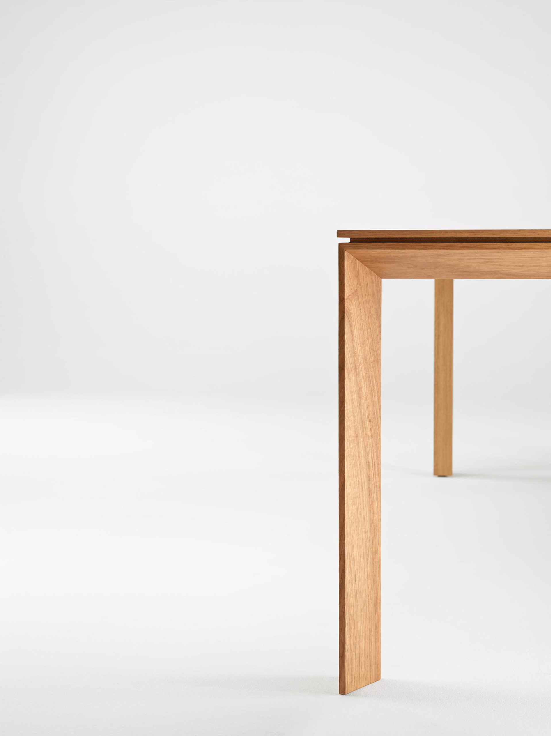 The triangular profile of the wooden frame sets the table apart, making Iru a pleasant, easy piece. Furthermore, the possibility of extending it makes it perfect for any space available and appropriate situation.