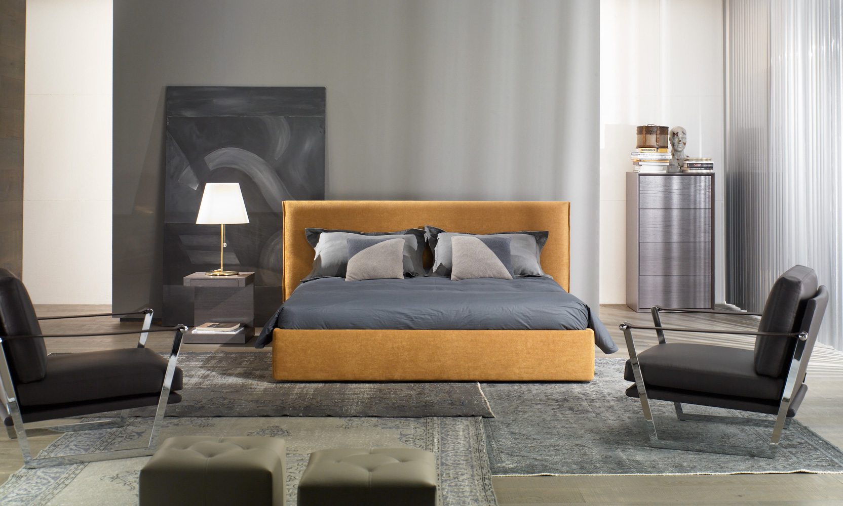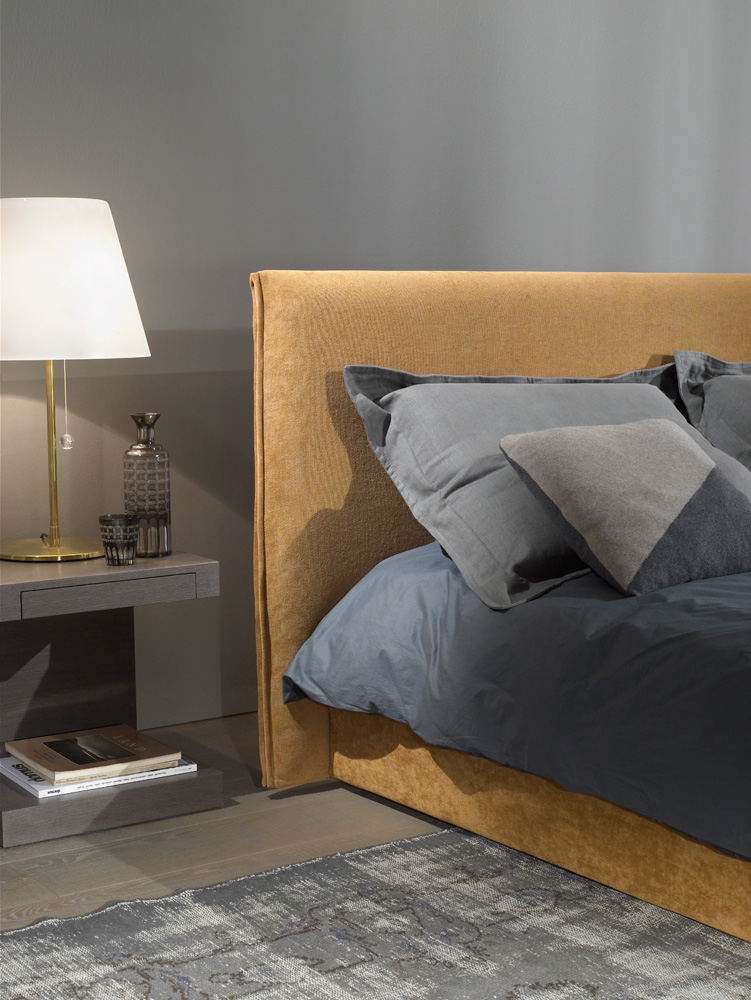 Jersey is a bed with clean and simple lines. The thinness of the headboard as well as the frame allows it to be adapted to modern interiors where space is limited. It comes with a levelling system in order to adjust to the different sizes of slats and mattresses. The upholstery is completely removable and almost all parts can be detached.